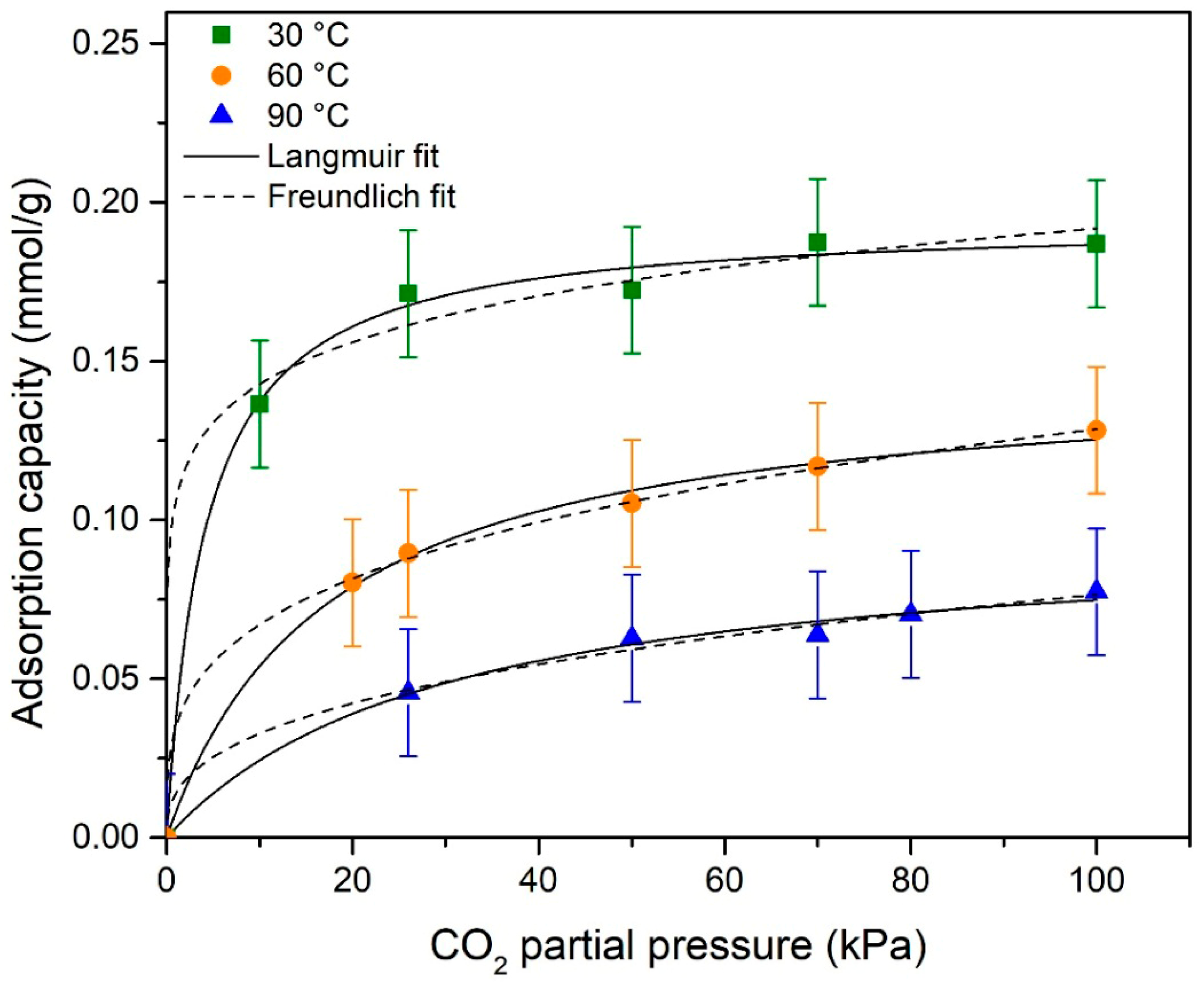 | Langmuir | qm (mmol/g) | 0.194 | 0.147 | 0.097 |