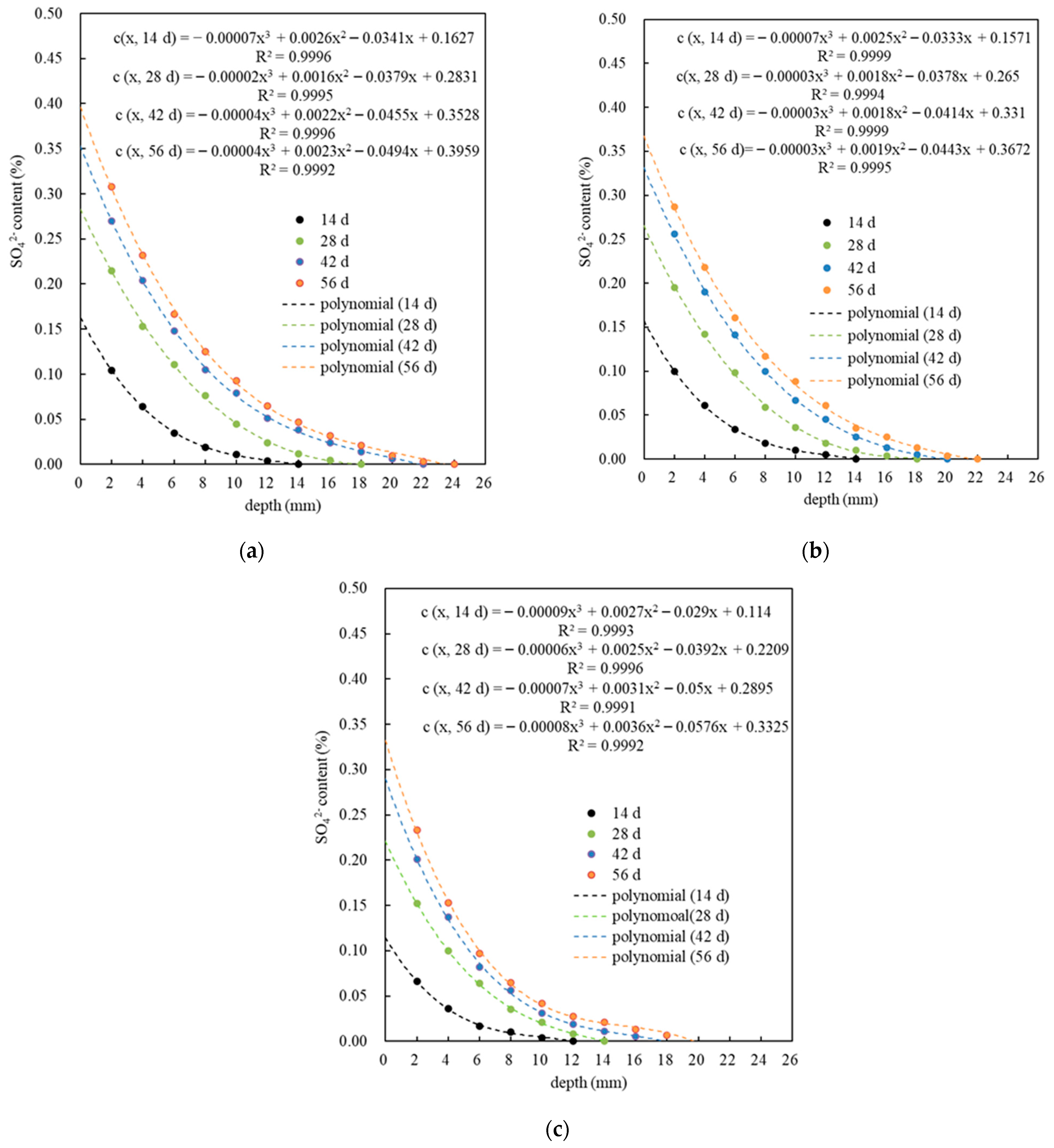 3.1. The Migration Law of Sulfate Ions in the PMPC Slurry Specimens
