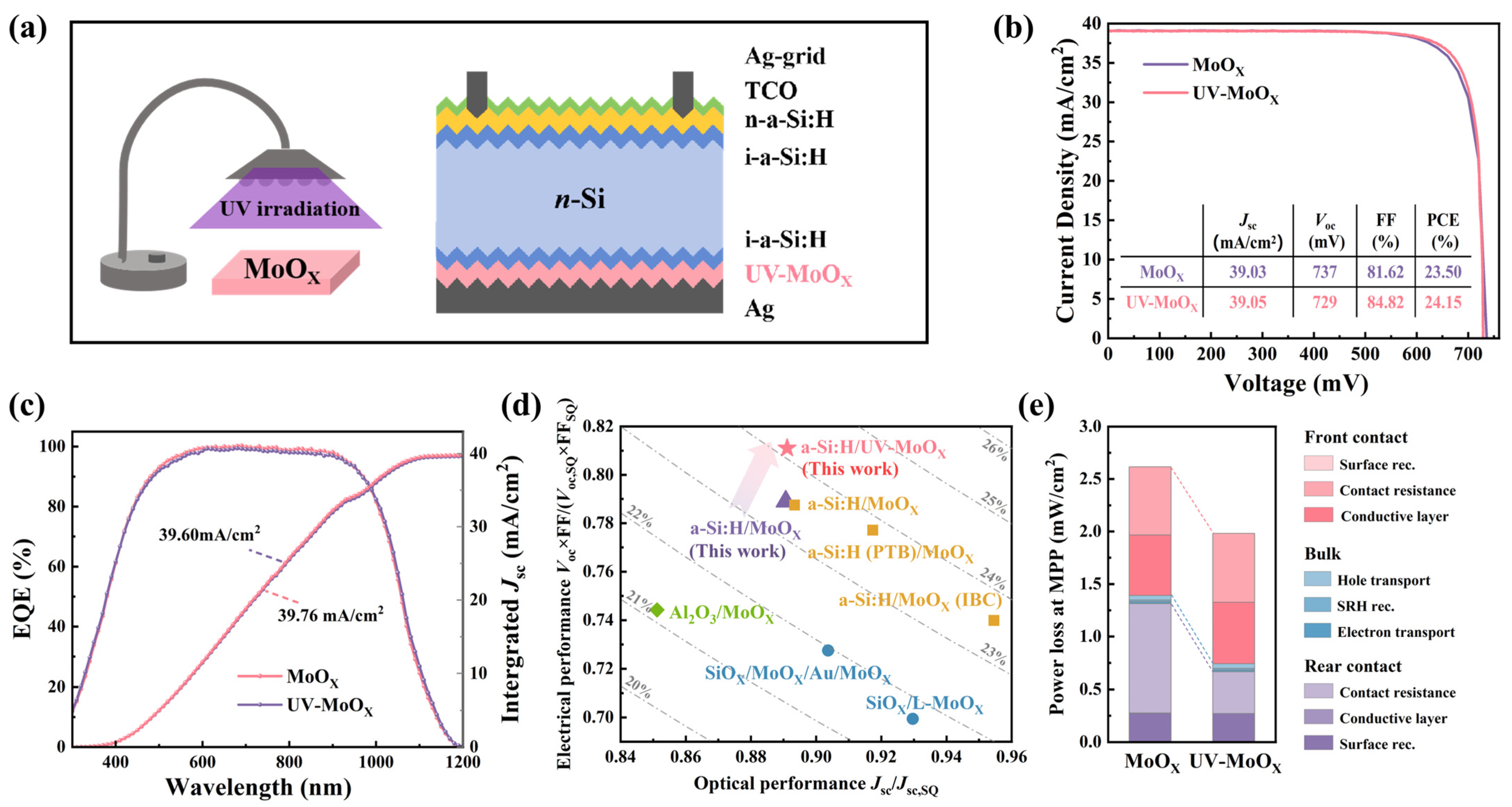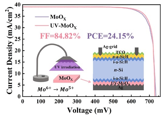 Yang L, Lu W, Li J, Chen S, Liu T, Yuan D, Wang Y, Zhu J, Yan H, Zhang Y, et al. UV-Engineered Oxygen Vacancies in MoOX Interlayers Enable 24.15% Efficiency for Crystalline Silicon Solar Cells. Materials. 2025; 18(22):5167. https://doi.org/10.3390/ma18225167