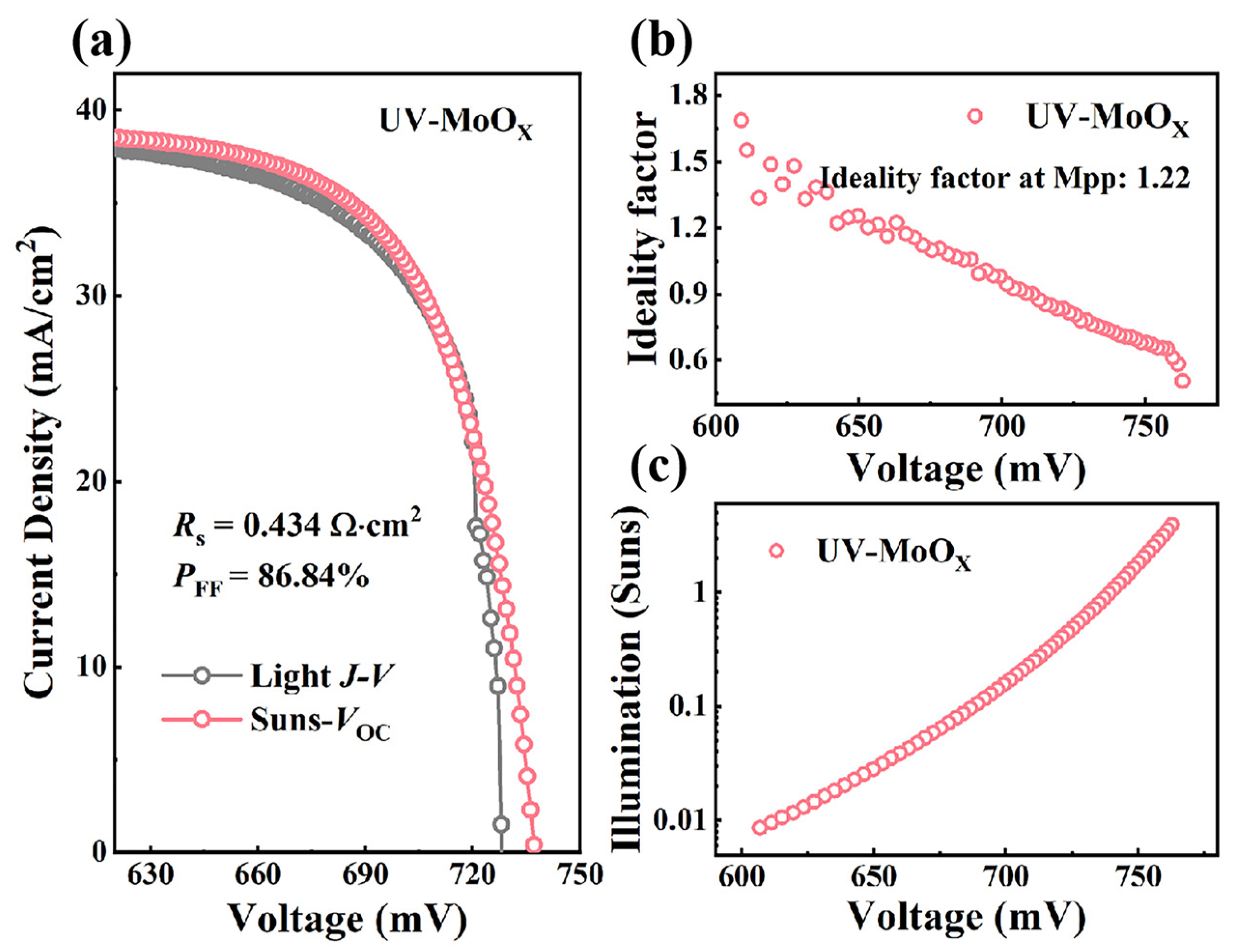 Chicago/Turabian StyleYang, Linfeng, Wanyu Lu, Jingjie Li, Shaopeng Chen, Tinghao Liu, Dayong Yuan, Yin Wang, Ji Zhu, Hui Yan, Yongzhe Zhang, and et al. 2025. "UV-Engineered Oxygen Vacancies in MoOX Interlayers Enable 24.15% Efficiency for Crystalline Silicon Solar Cells" Materials 18, no. 22: 5167. https://doi.org/10.3390/ma18225167