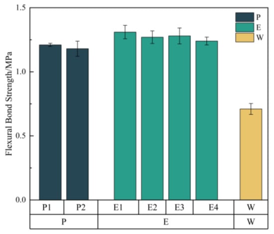 Each coating formulation was tested five times, and the bonding flexural strength was calculated as the average of the measurements. The results are presented in Figure 10.