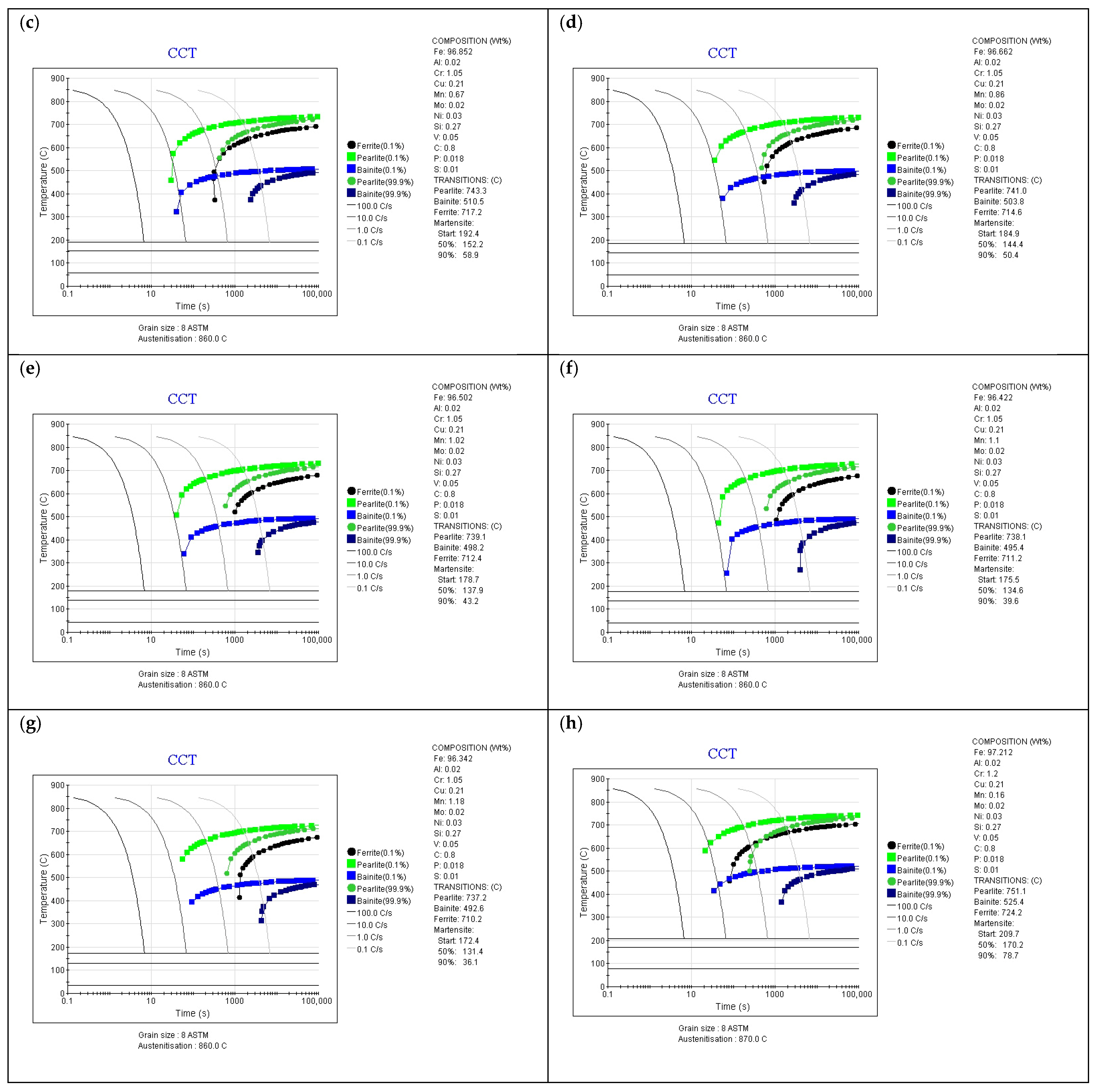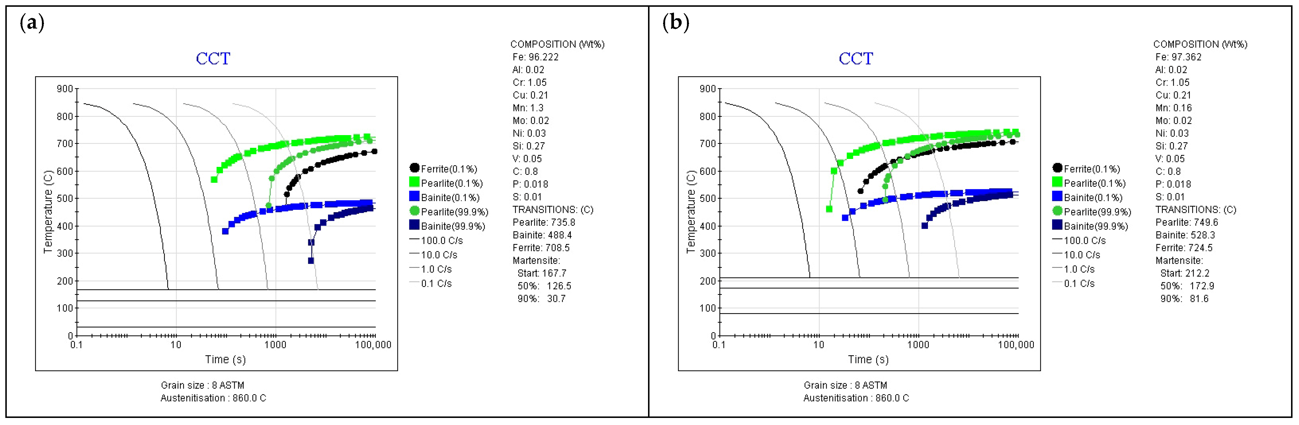 - Saunders, N.; Guo, Z.; Li, X.; Miodownik, A.P.; Schillé, J.-P. The Calculation of TTT and CCT Diagrams for General Steels. 2004. Available online: https://www.researchgate.net/publication/242271477_The_Calculation_of_TTT_and_CCT_diagrams_for_General_Steels (accessed on 4 November 2025).