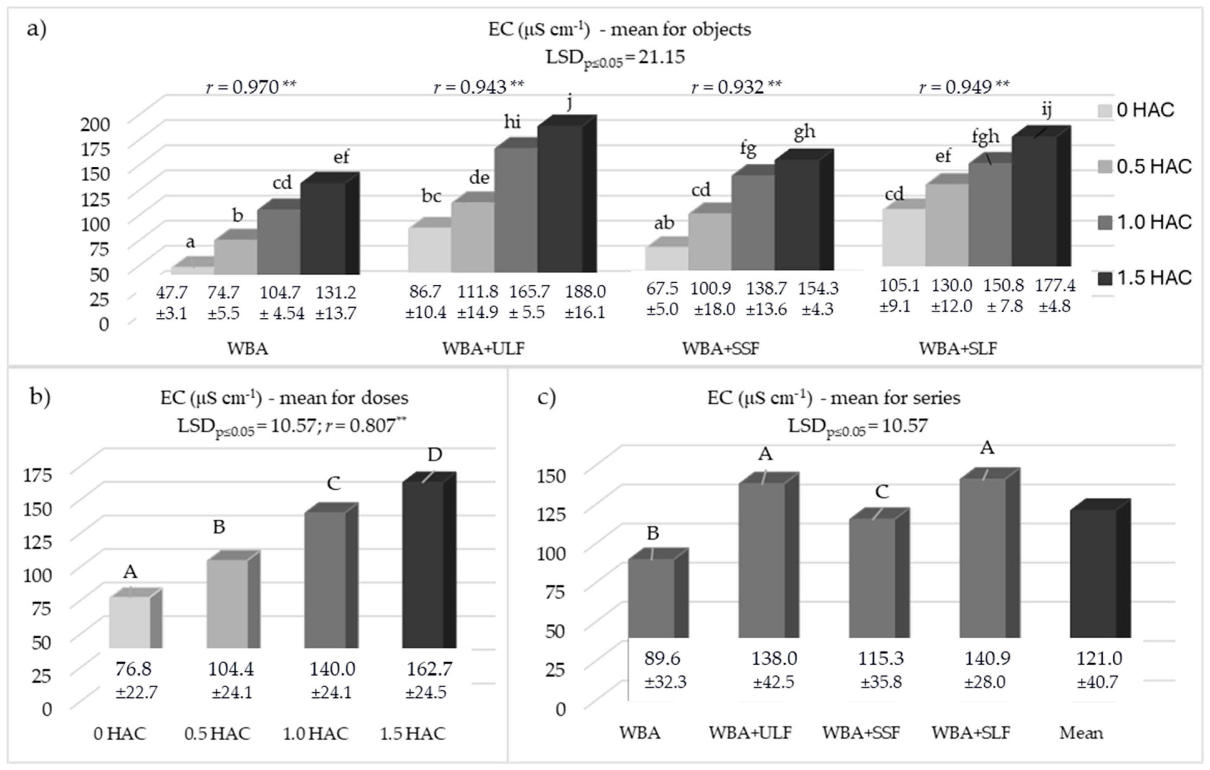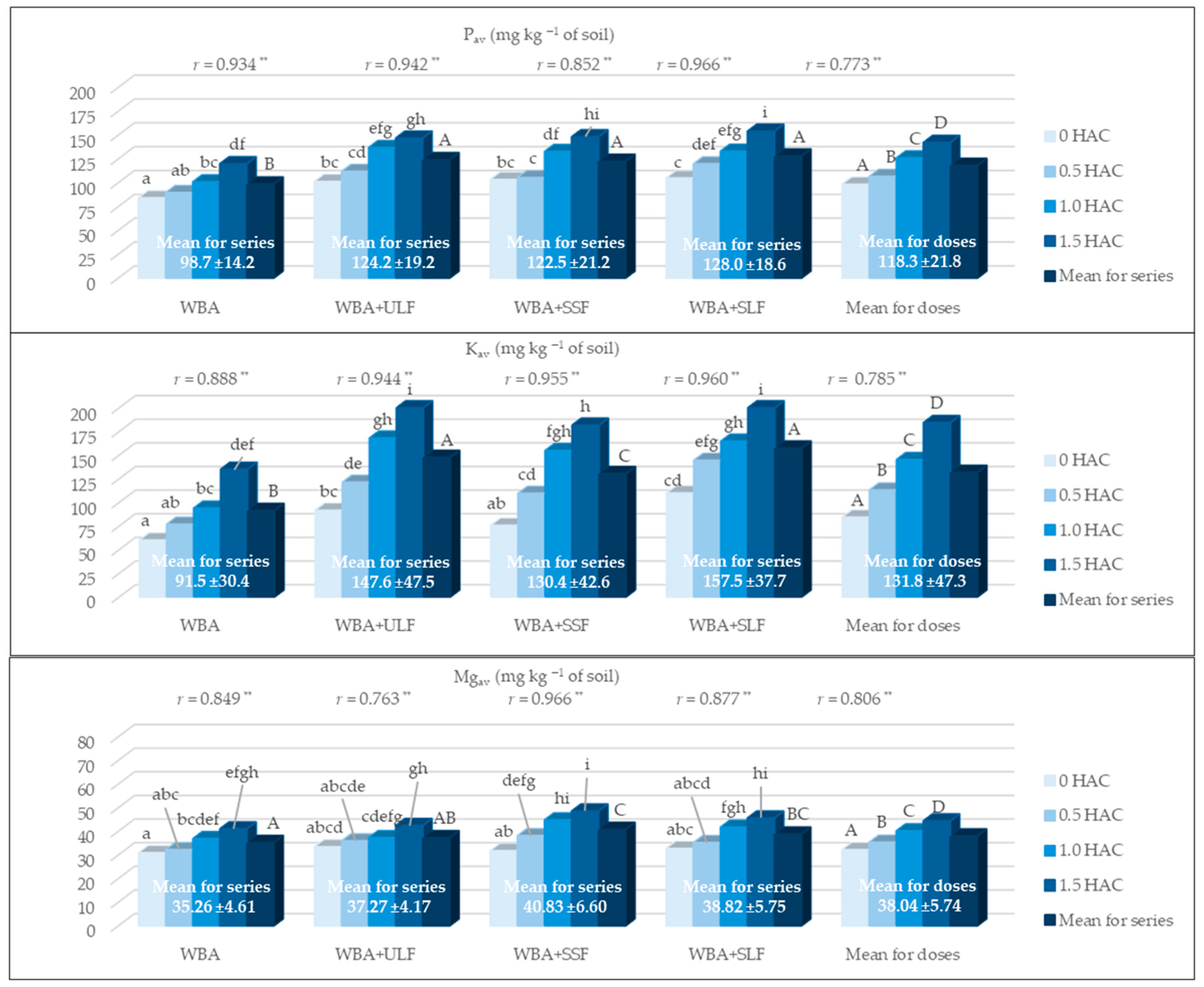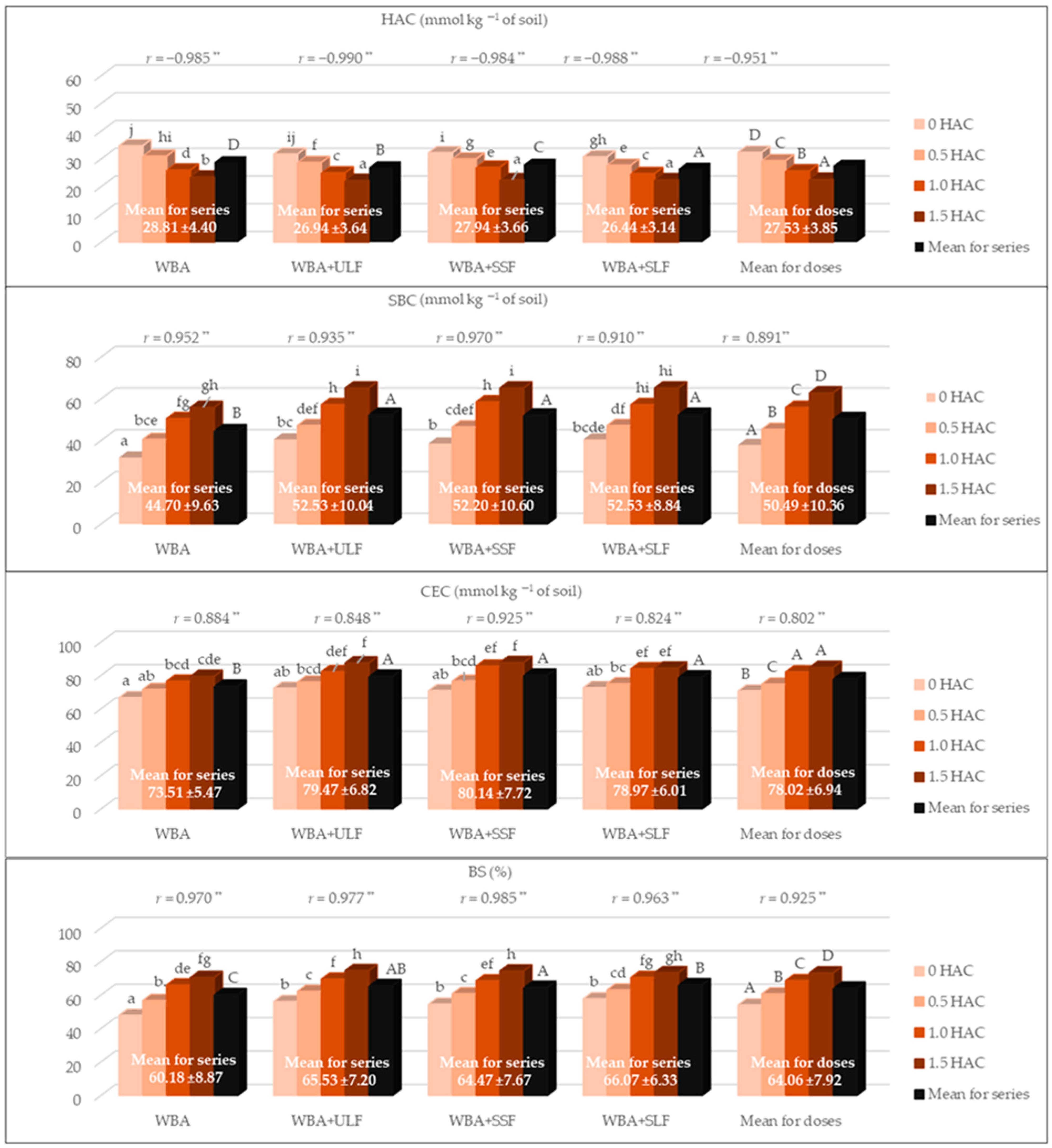 | WBA (Doses of HAC) | WBA + ULF | WBA + SSF | WBA + SLF |