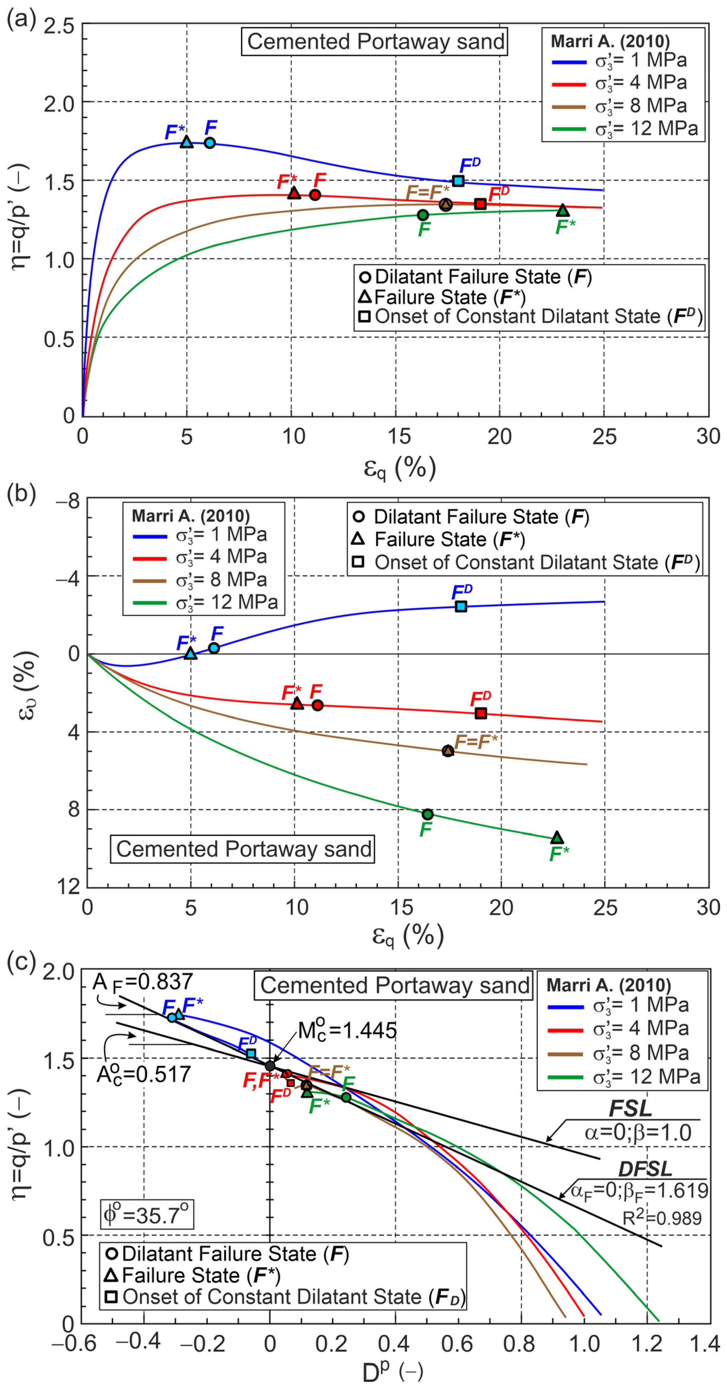 ) = 0.619 > 0 represents the influence of debonding on the relationship for DFSs for Portaway cemented sand with 5% cement. The correctness of the parameters obtained for the FSC (