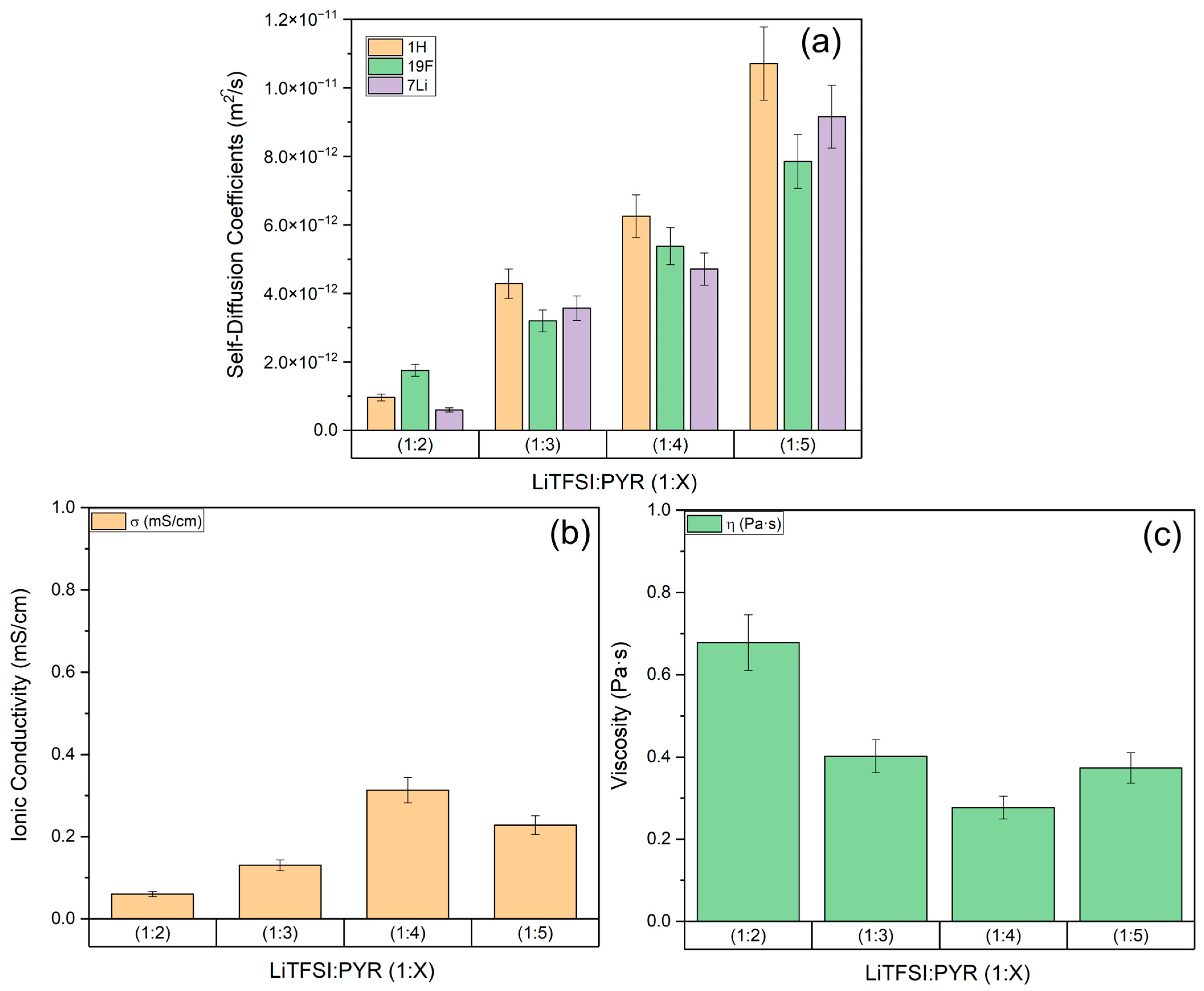 | Fitting Parameters | LiTFSI:PYR (1:2) | LiTFSI:PYR (1:3) | LiTFSI:PYR (1:4) | LiTFSI:PYR (1:5) |