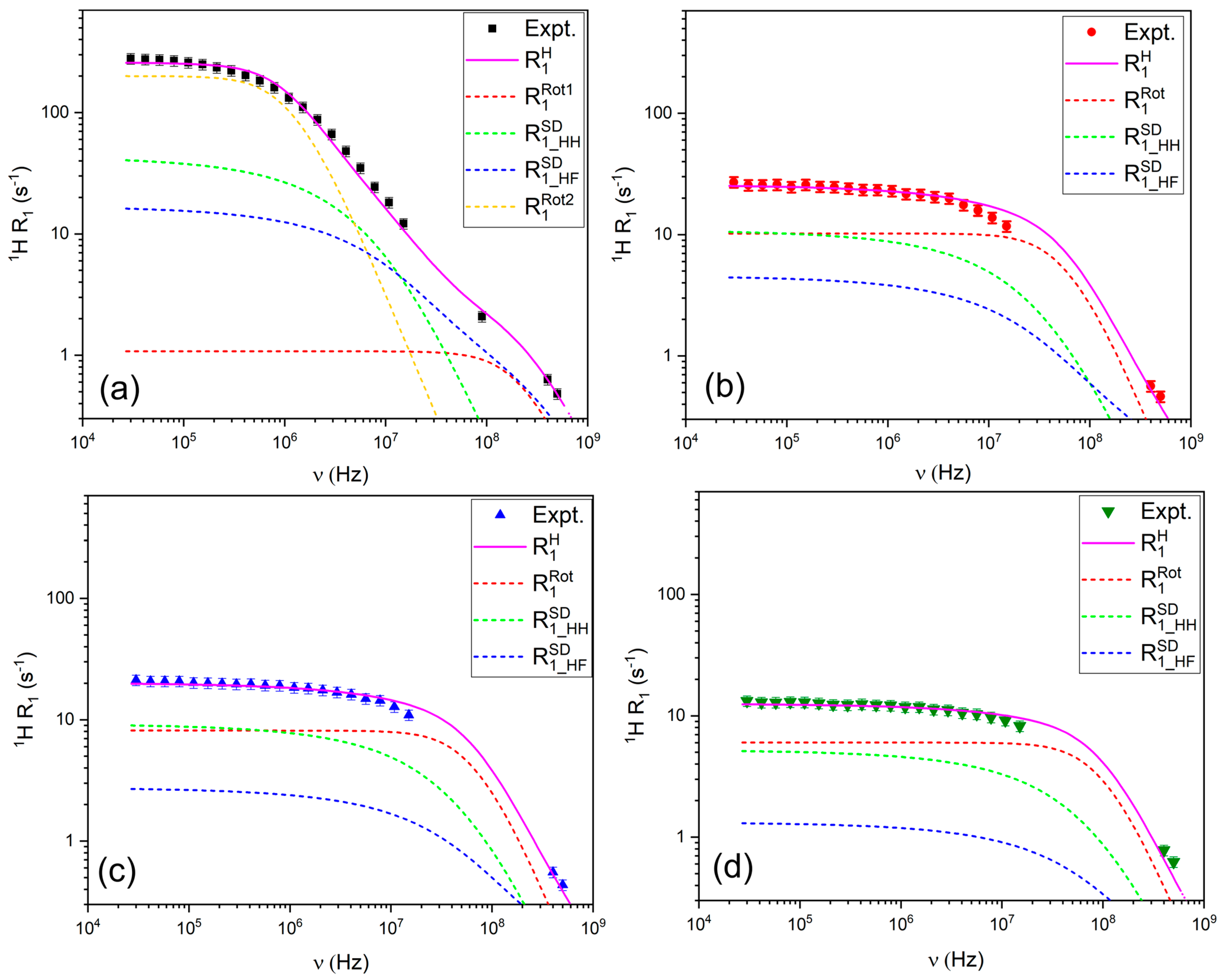 - Nordio, P.L.; Segre, U. Magnetic Relaxation from First-Rank Interactions. J. Magn. Reson. (1969) 1977, 27, 465–473. [Google Scholar] [CrossRef]