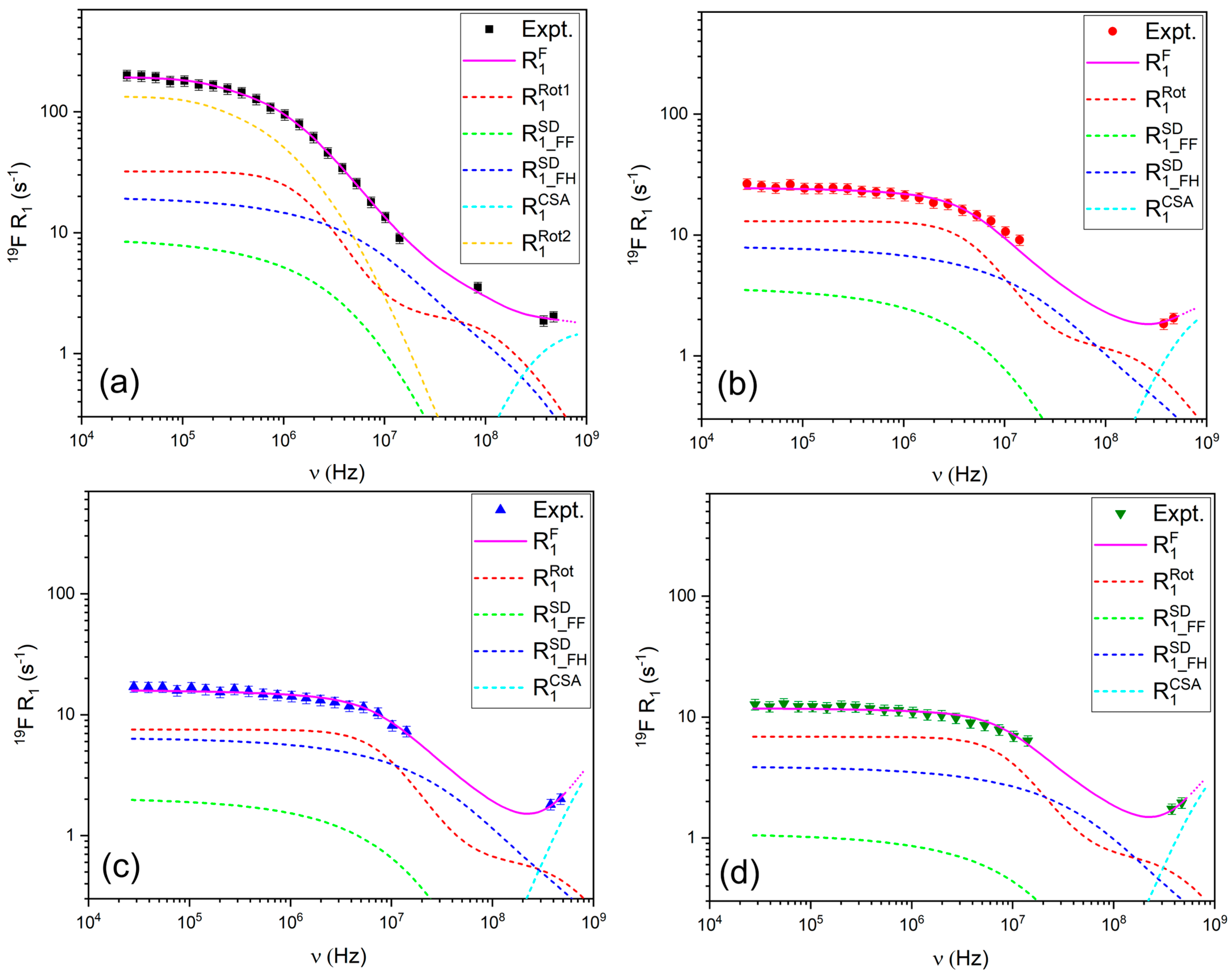 3.2.1. 1H and 19F Relaxation Mechanisms