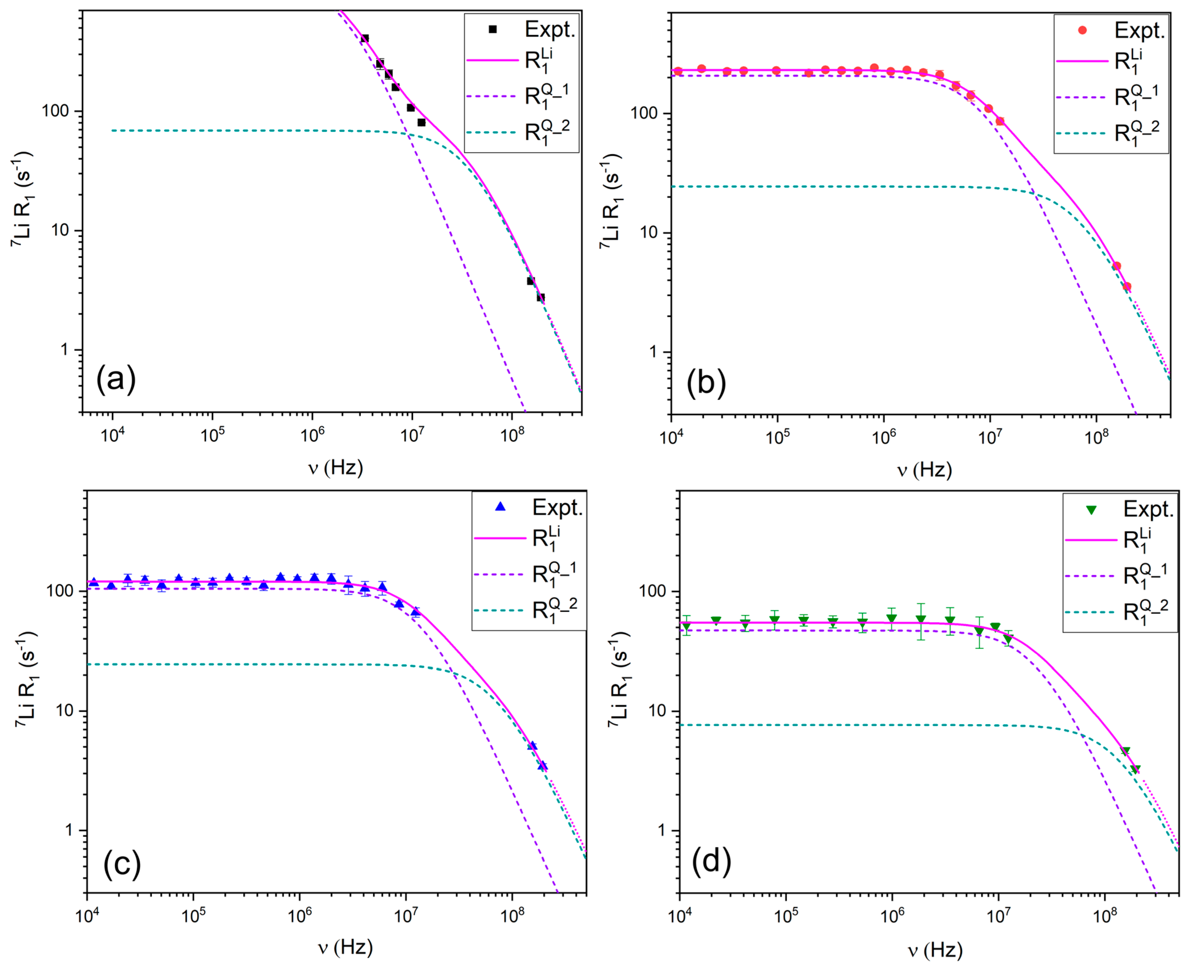 3.2.2. 7Li Relaxation Mechanisms