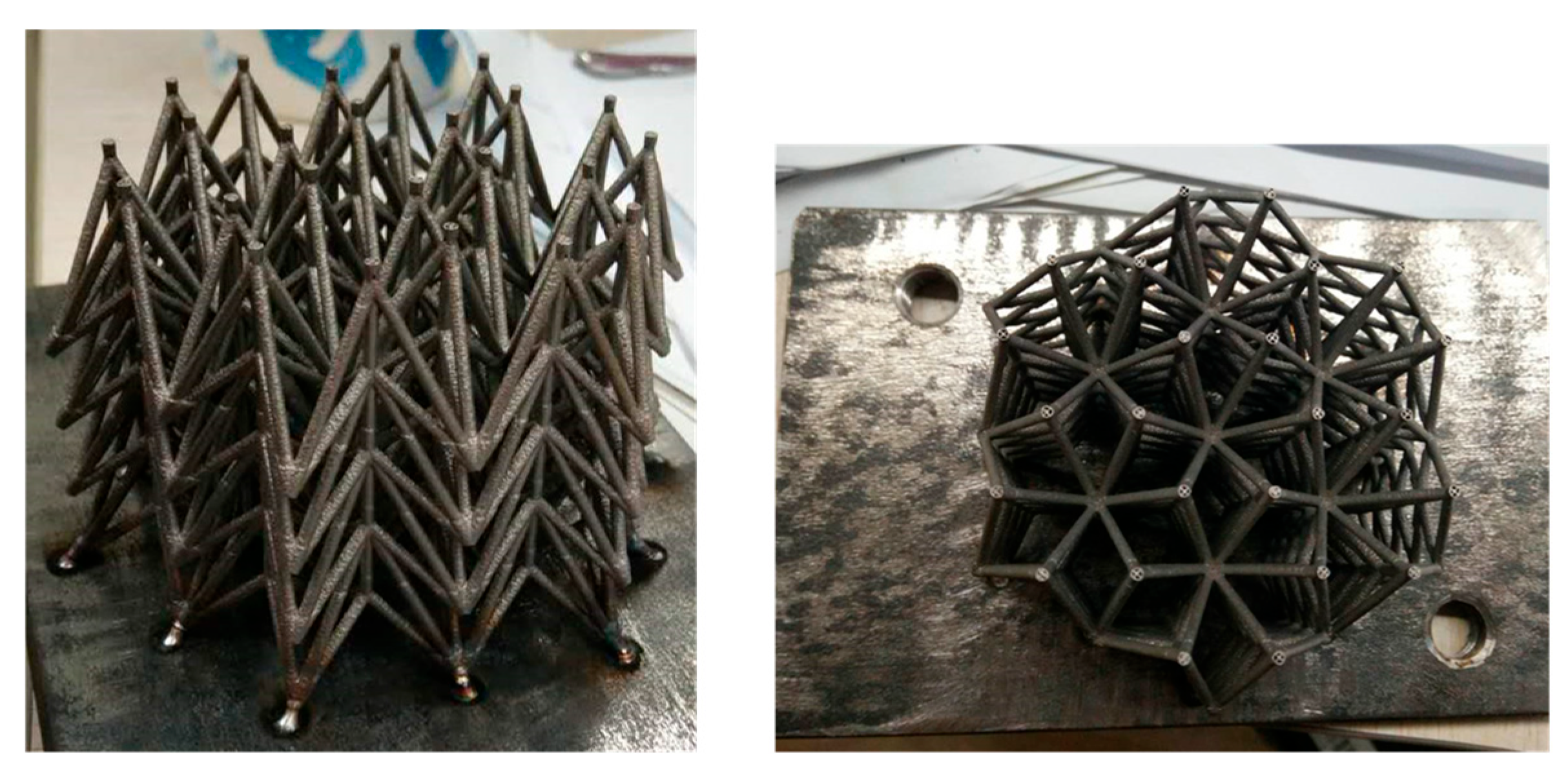 - Li, P.F. Constitutive and failure behaviour in selective laser melted stainless steel for microlattice structures. Mater. Sci. Eng. A 2015, 622, 114–120. [Google Scholar] [CrossRef]