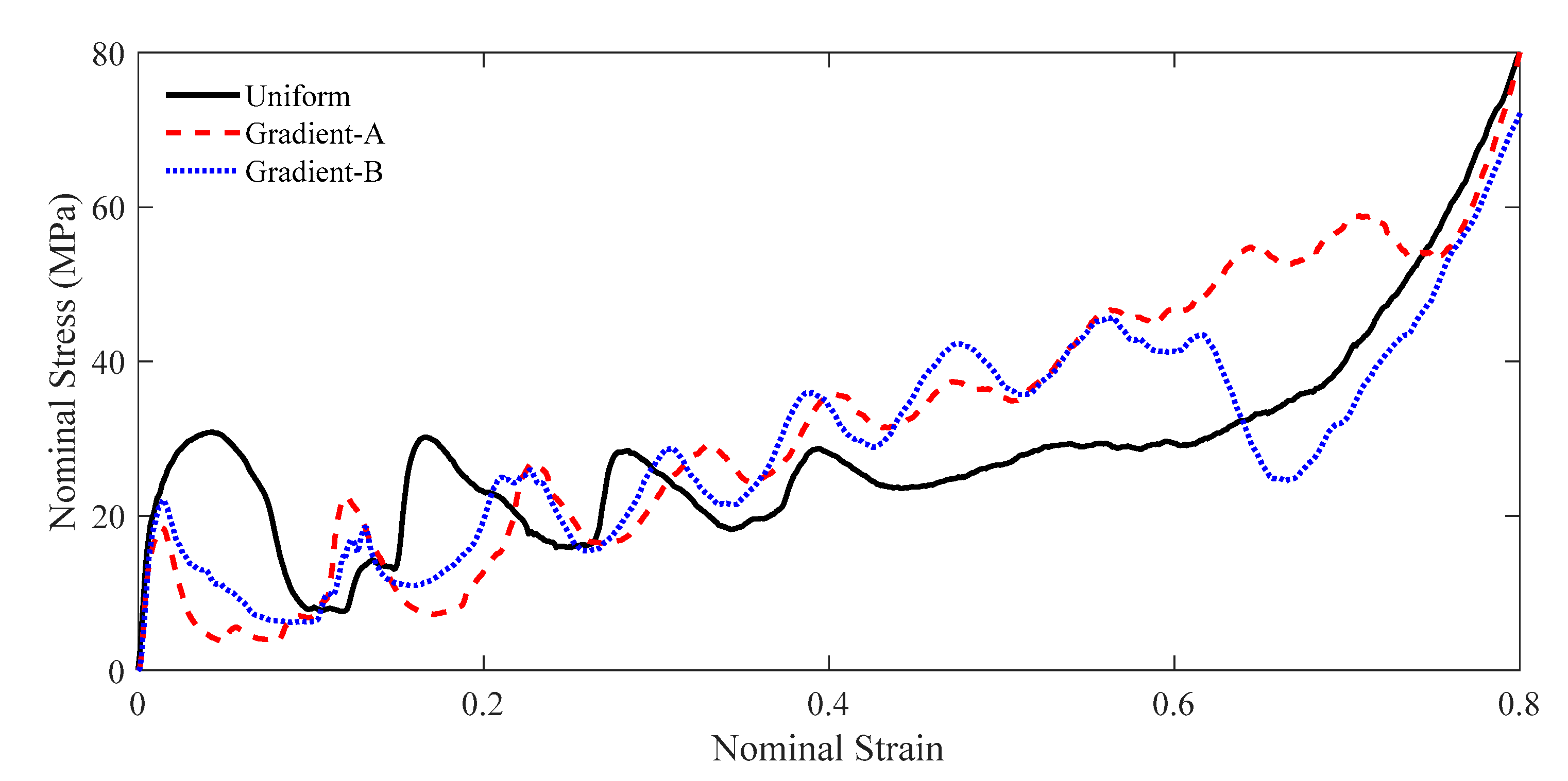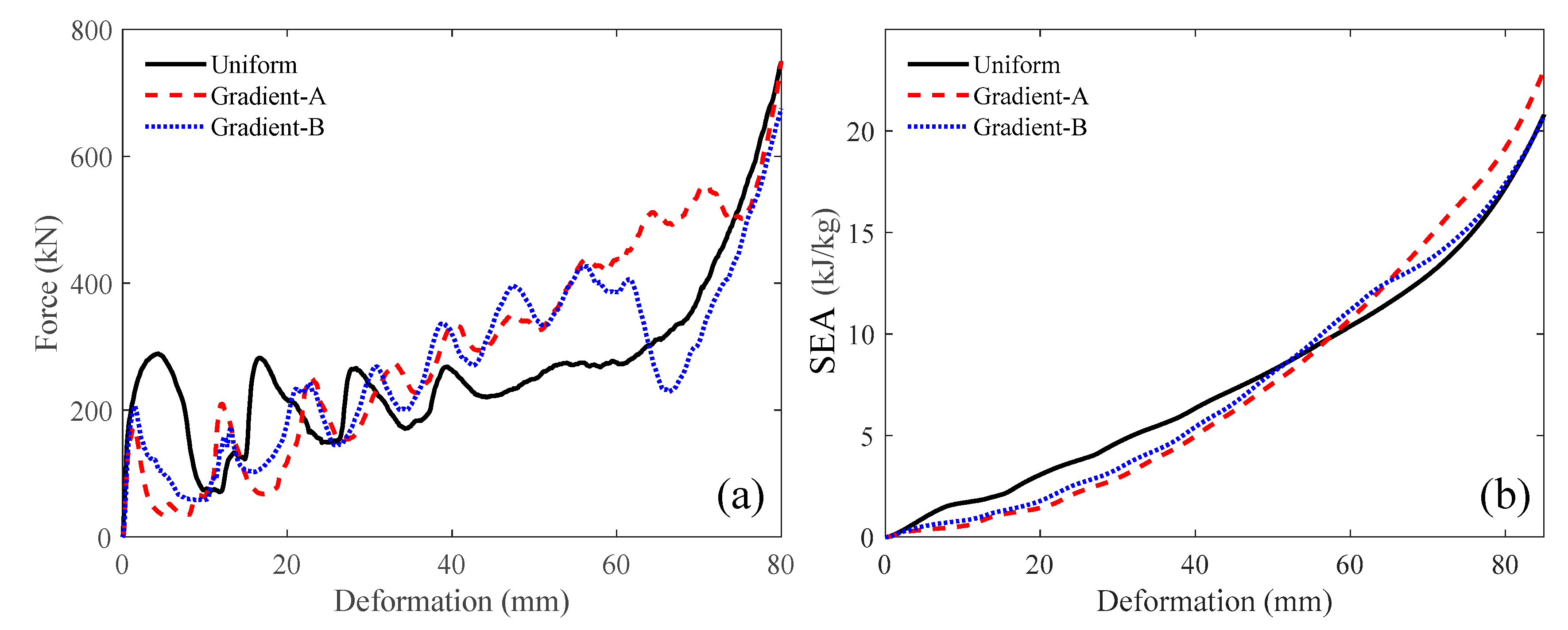 - Zheng, J.; Qin, Q.; Wang, T. Impact plastic crushing and design of density-graded cellular materials. Mech. Mater. 2016, 94, 66–78. [Google Scholar] [CrossRef]
