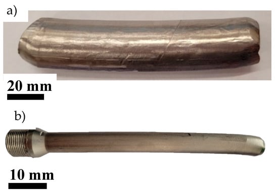 - Pachla, W.; Kulczyk, M.; Przybysz, S.; Skiba, J.; Wojciechowski, K.; Przybysz, M.; Topolski, K.; Sobolewski, A.; Charkiewicz, M. Effect of severe plastic deformation realized by hydrostatic extrusion and rotary swaging on the properties of CP Ti grade 2. J. Mater. Process. Technol. 2015, 221, 255–268. [Google Scholar] [CrossRef]