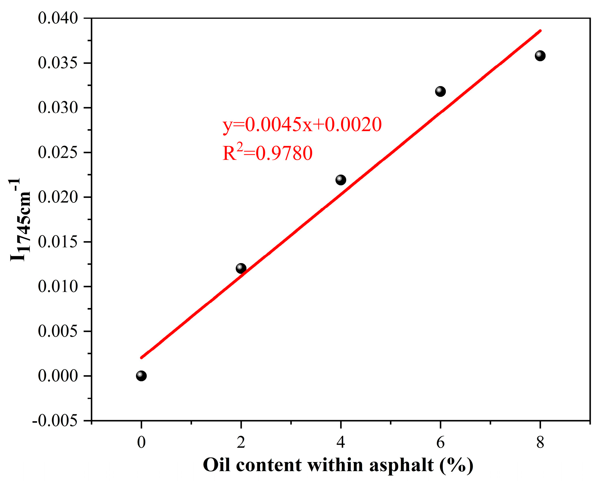 The relation establishment between absorption peak index I1745cm−1 and oil concentration in asphalt