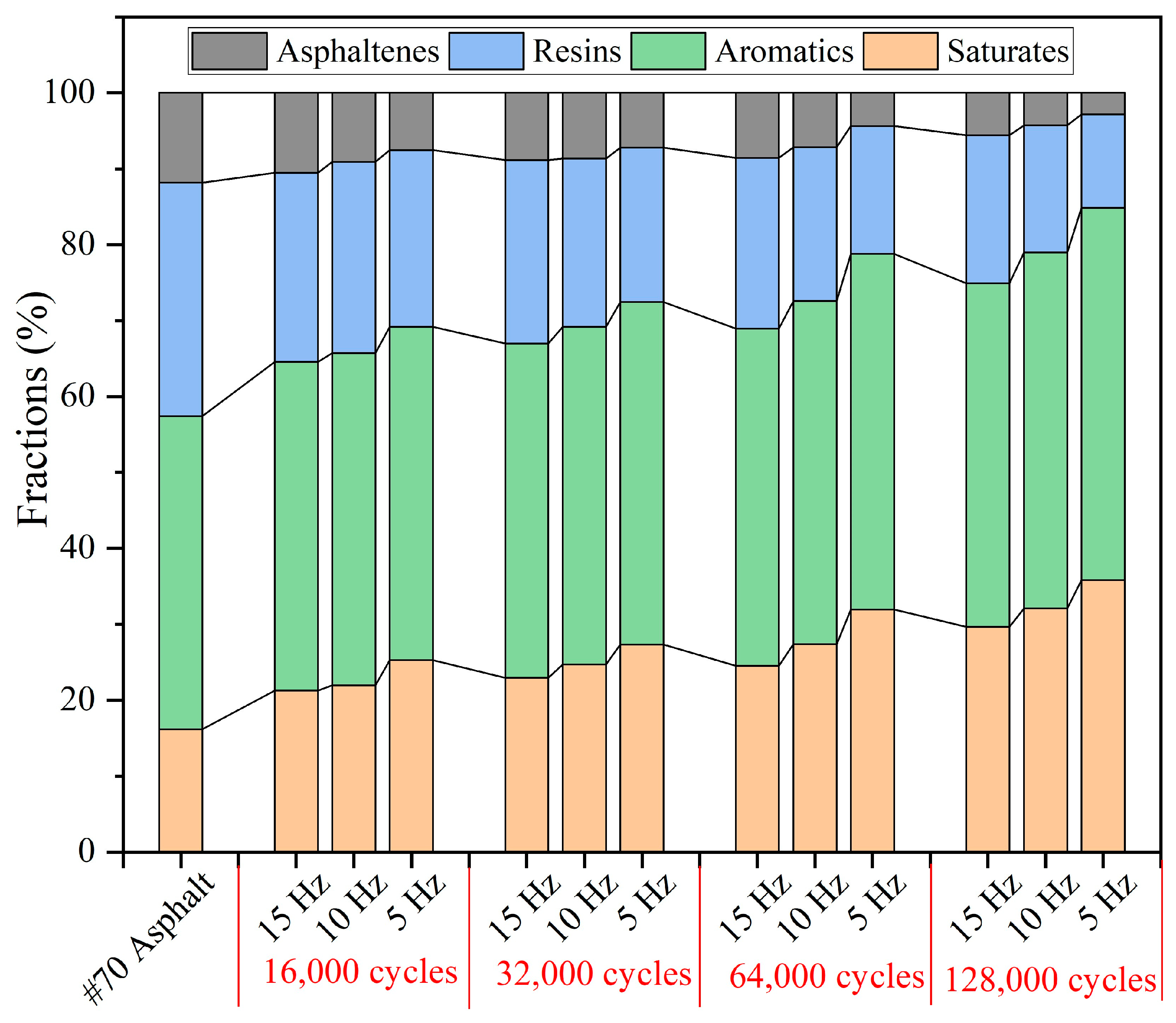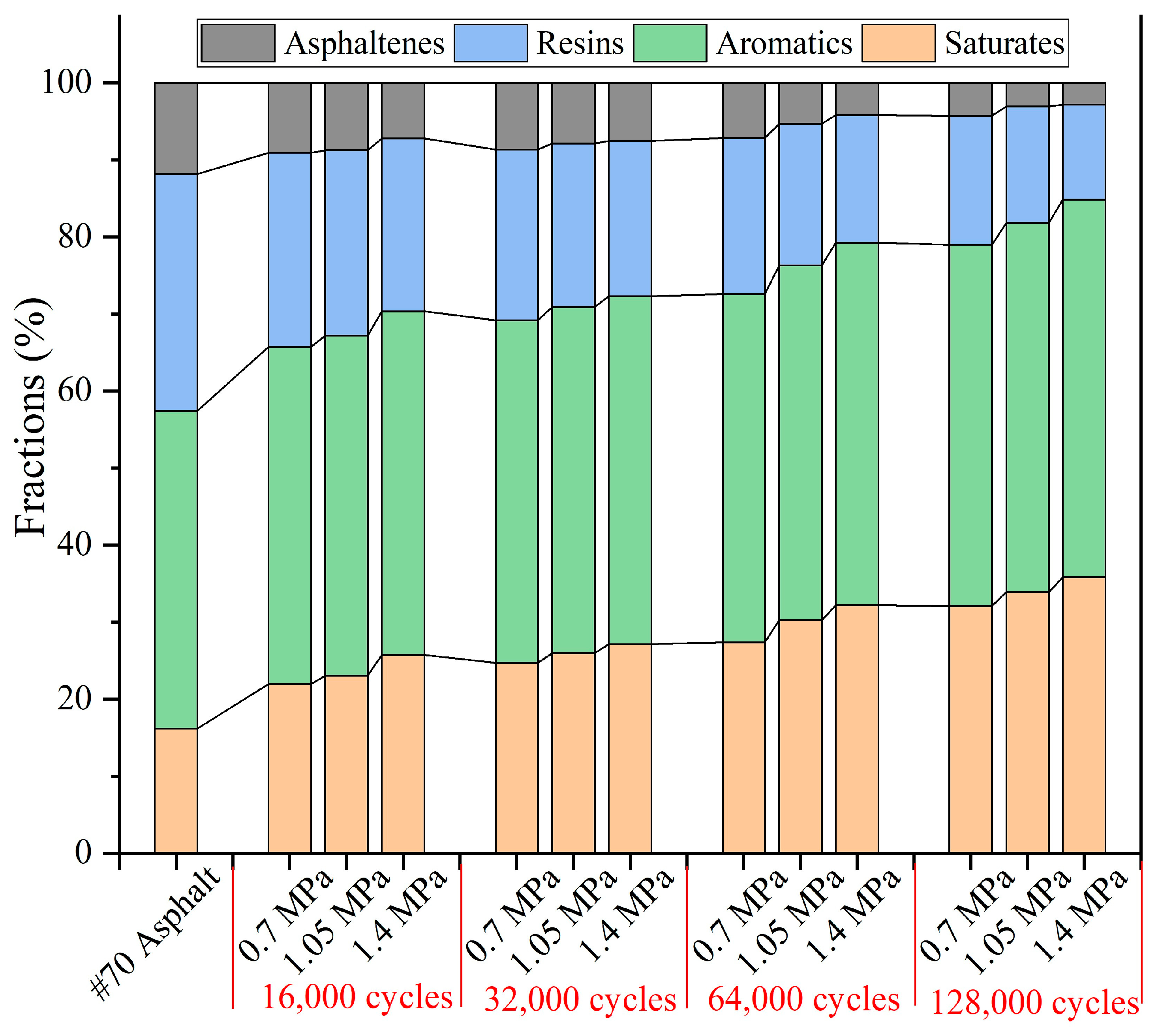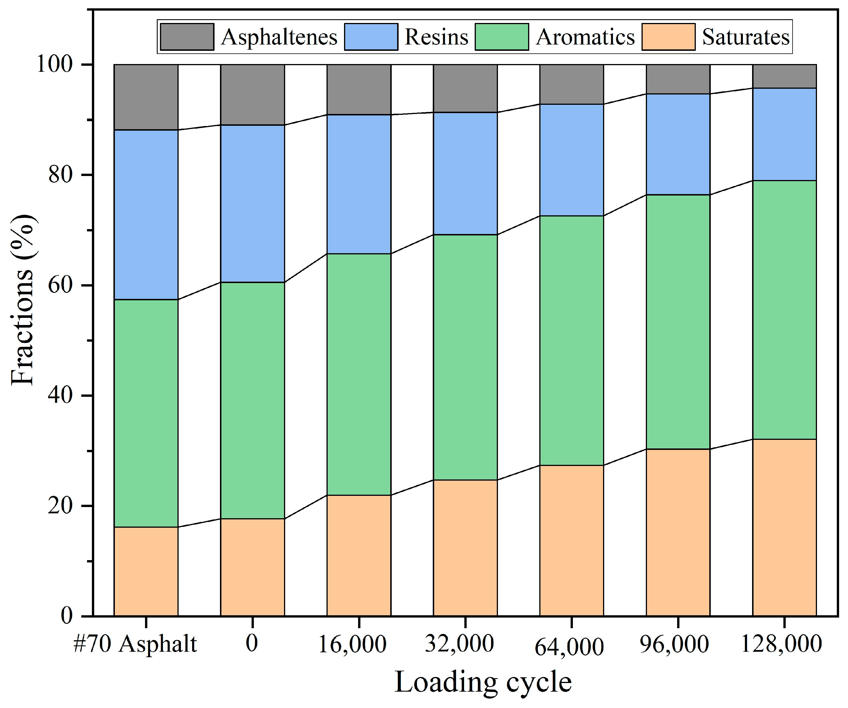 Figure 31. The SARA fractions of asphalt after different cycles of load.