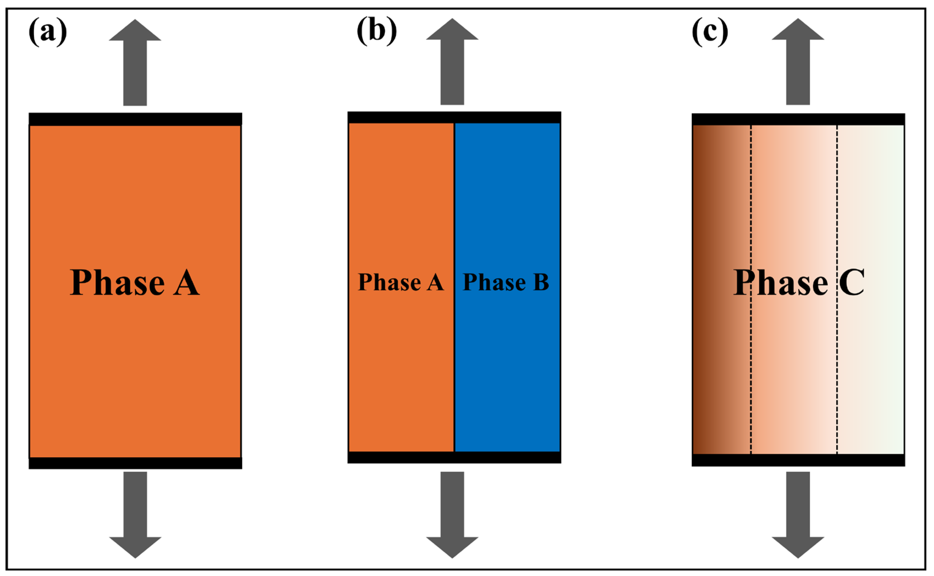- Reuss, A. Berechnung der Fließgrenze von Mischkristallen auf Grund der Plastizitätsbedingung für Einkristalle. ZAMM-J. Appl. Math. Mech. Z. Angew. Math. Und Mech. 1929, 9, 49–58. [Google Scholar] [CrossRef]