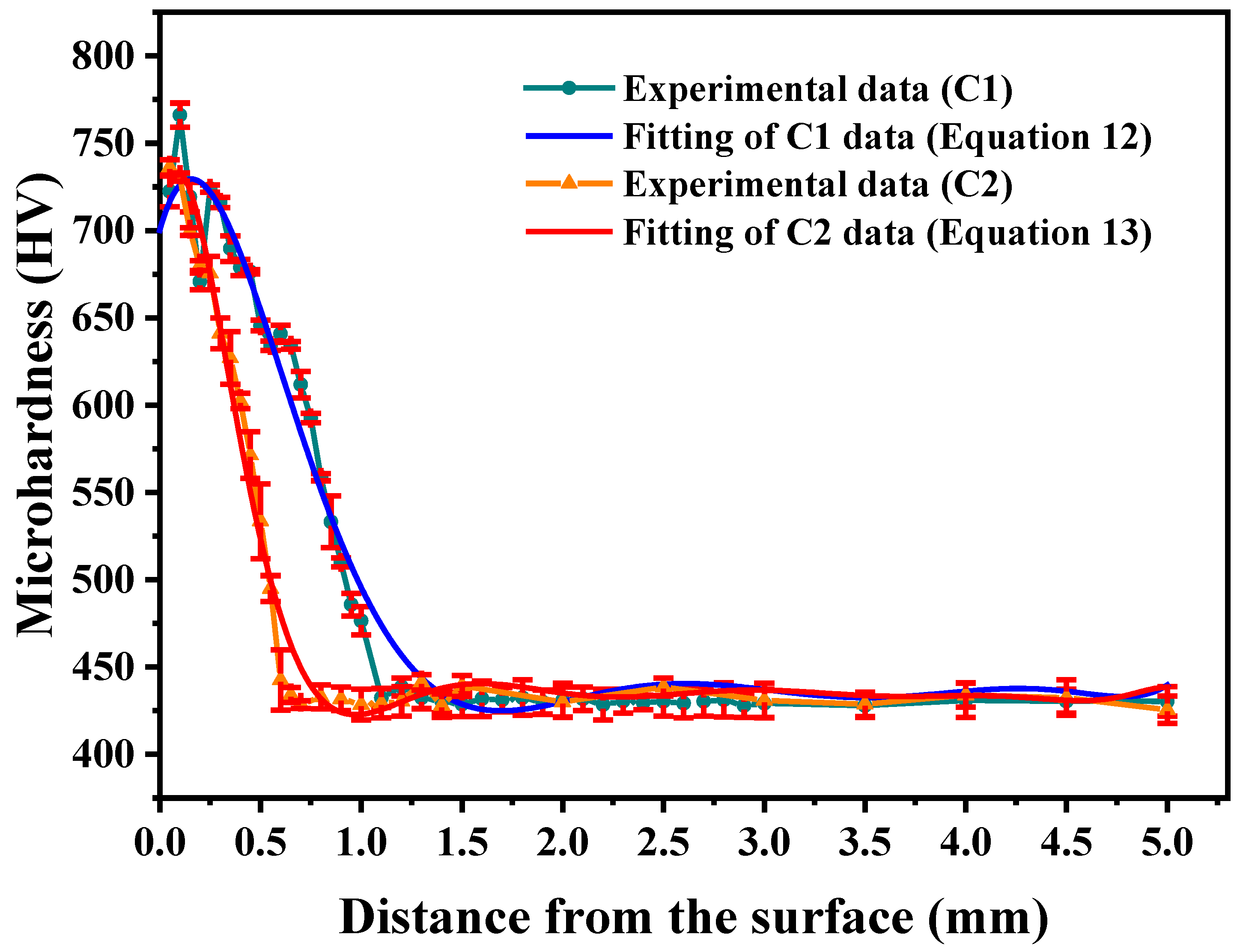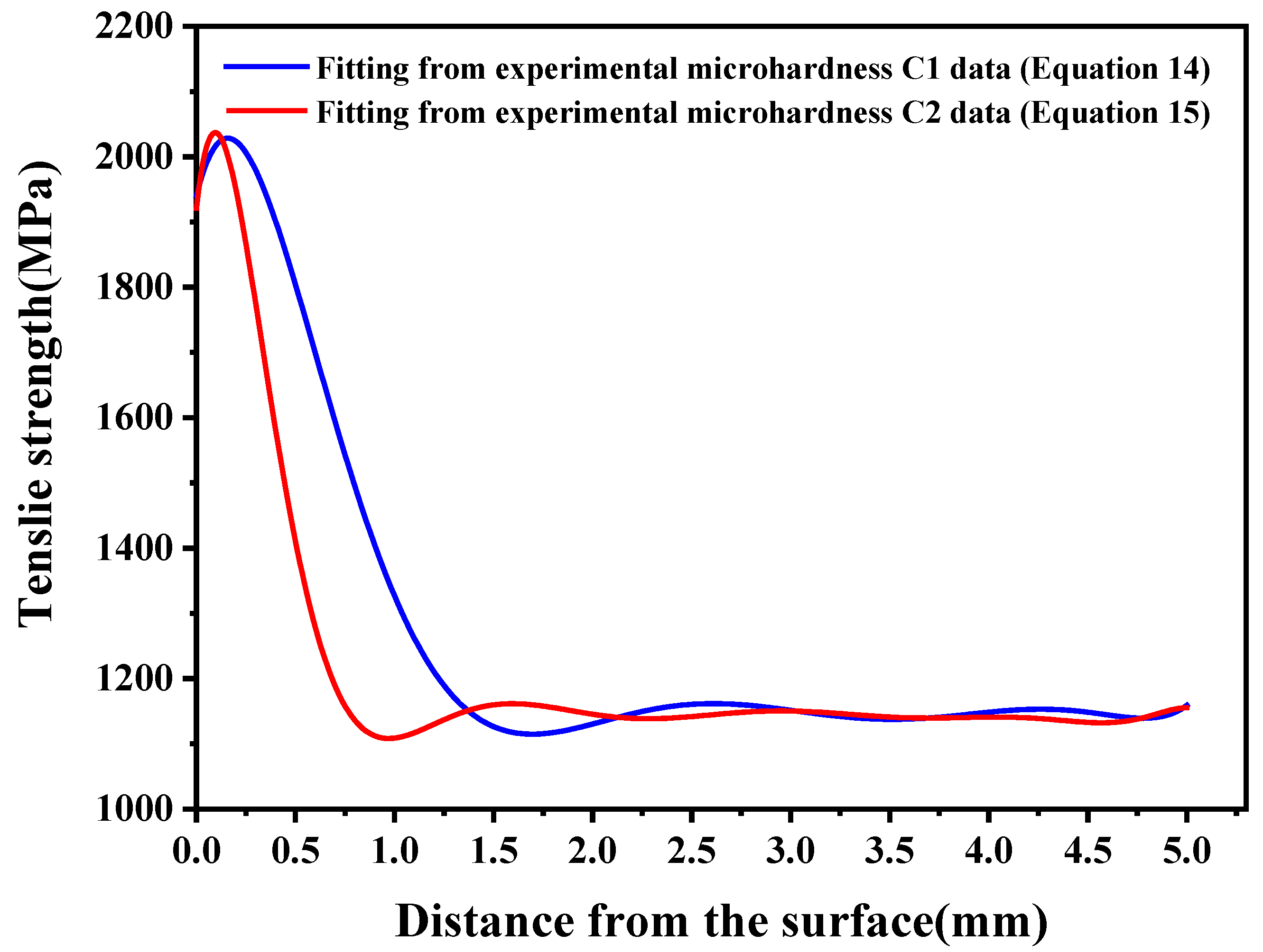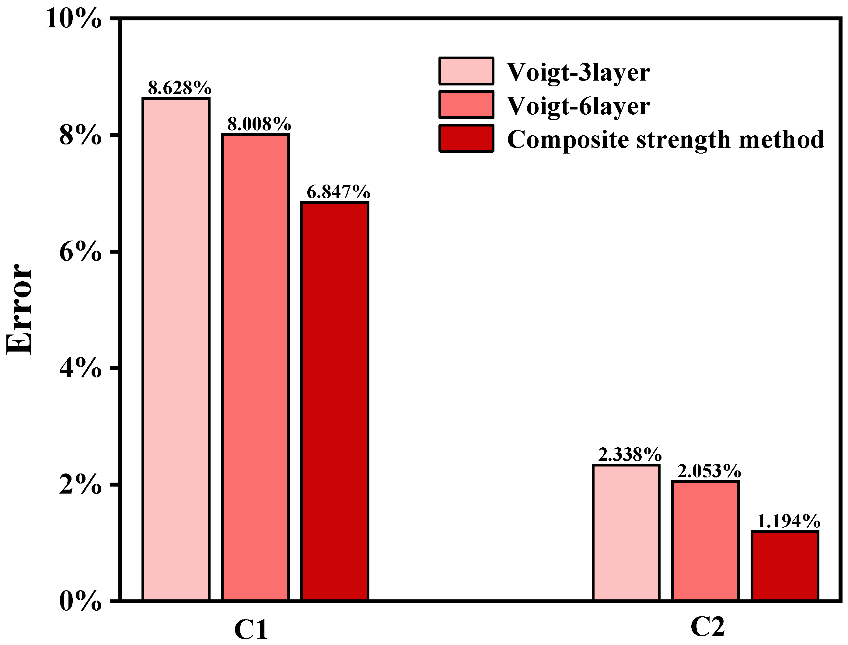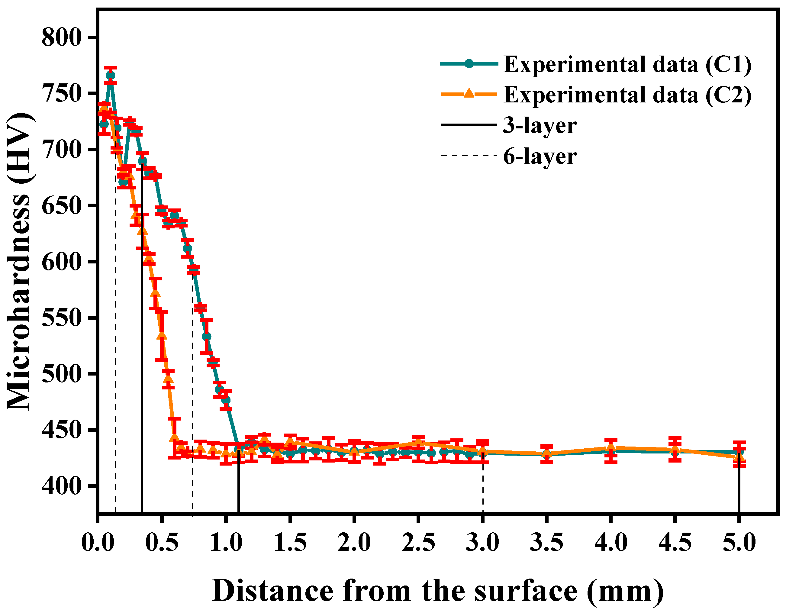 - Experimental validation using C1 and C2 specimens with different carburizing depths confirms that the tensile strength prediction error of this method remains below 7%, with a minimum error reaching 1.2%. Compared to the conventional Voigt-related multilayer method, the proposed method demonstrates a significant improvement in both evaluation efficiency and accuracy, achieving over 41.8% enhancement in prediction precision.