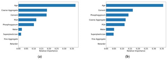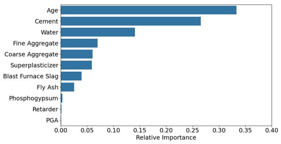 Figure 13 presents the feature importance ranking computed by the VFM model. Similar to the SDM model, Age has the highest importance score (0.35), followed by Cement (0.25) and Water (0.13), indicating that the transfer learning model successfully captured the general strength prediction rules of conventional concrete. Other features, such as Fine Aggregate (0.08), Coarse Aggregate (0.07), and Superplasticizer (0.06), had relatively lower importance scores, suggesting their limited contribution to model predictions. Features like Phosphogypsum (0.04), Blast Furnace Slag (0.03), and Fly Ash (0.02) exhibited even weaker influence. Importantly, all features had non-zero importance scores, confirming that the transfer learning model successfully identified their impact on strength.