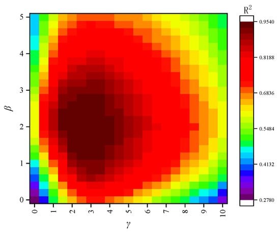 The hyperparameters β and γ in the dynamic weighting formula (Equation (6)) are crucial as they control the baseline importance and the dynamic adjustment range for the target domain samples. To justify the selection of β = 2 and γ = 3, a grid search-based sensitivity analysis was conducted. We systematically varied β within the range of [0, 5] and γ within the range of [0, 10], training the transfer learning model for each combination and evaluating its performance on the validation set. The results are visualized as a heatmap of the R2 score in Figure 17.