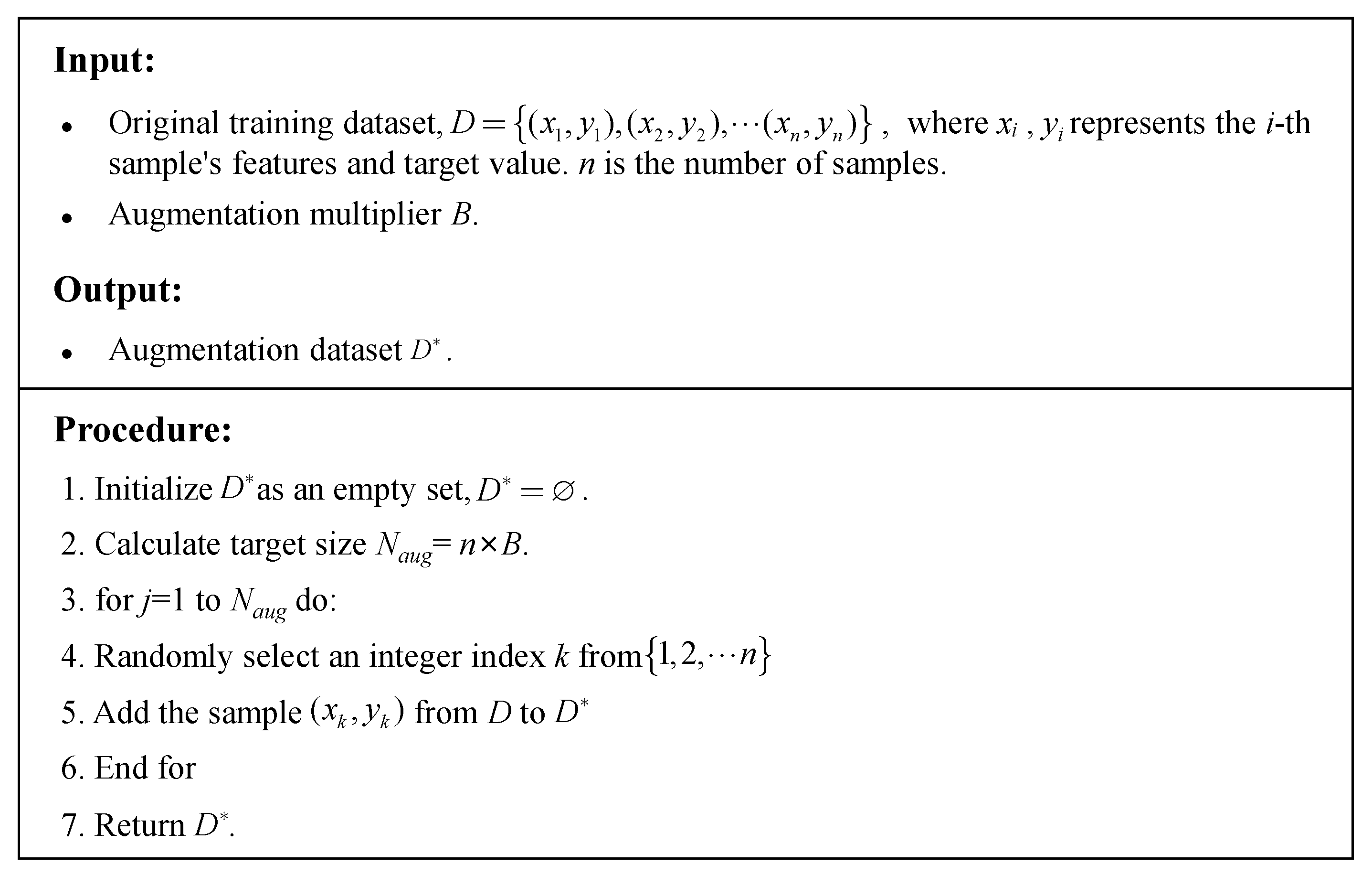 Bootstrap Resampling is a statistical inference method based on empirical distribution, originally proposed by Efron [28]. Its fundamental principle involves generating numerous simulated sample sets from the original datasets through repeated sampling with replacement, thereby expanding the data. Figure 1 illustrates its schematic diagram. This method requires no presupposition about data distribution patterns, relying solely on random sampling from original samples, thus providing a theoretical foundation for small-sample data augmentation.