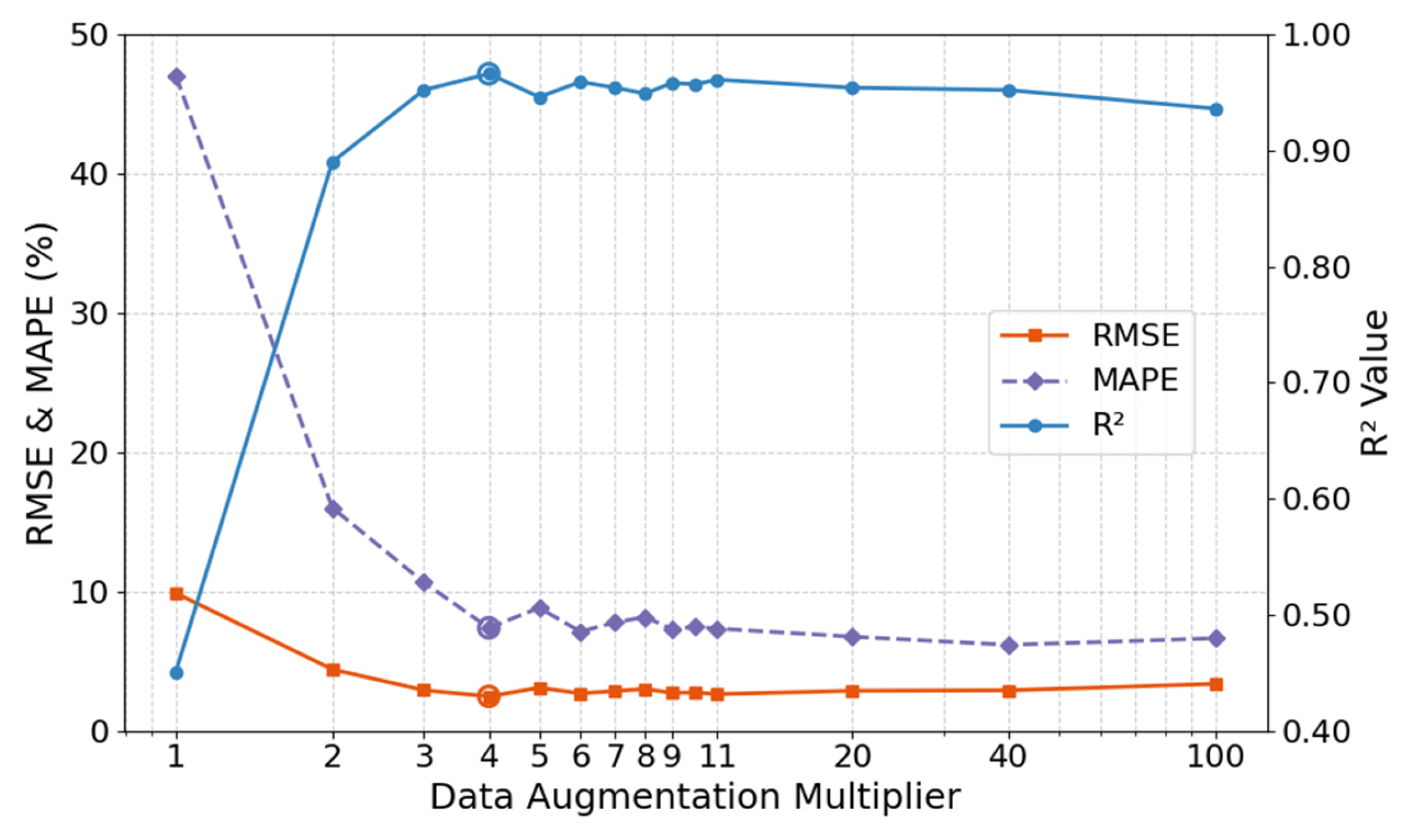 where wi represents dynamic weight of the i-th sample; β and γ are hyperparameters. Based on a sensitivity analysis detailed in Section 4.5, these were set to β = 2 and γ = 3 to achieve optimal model performance. max(e) is error normalization factor. N represents the number of samples. The weighting method ensures that samples with larger errors receive higher weights, guiding the model to prioritize learning prediction-blind spots in the target domain.