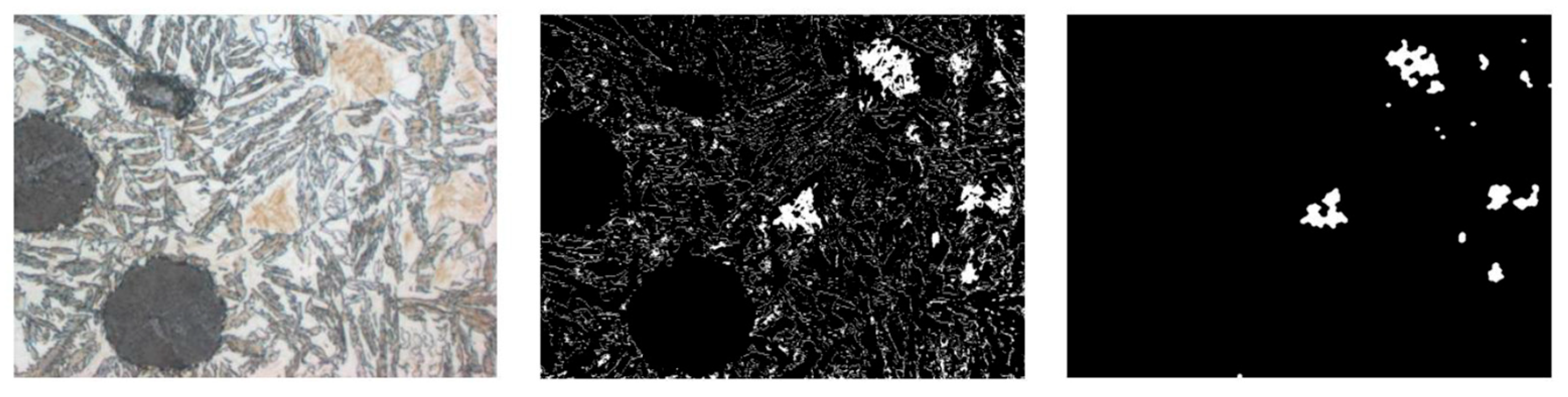 - Campbell, A.; Murray, P.; Yakushina, E.; Marshall, S.; Ion, W. New methods for automatic quantification of microstructural features using digital image processing. Mater. Des. 2018, 141, 395–406. [Google Scholar] [CrossRef]