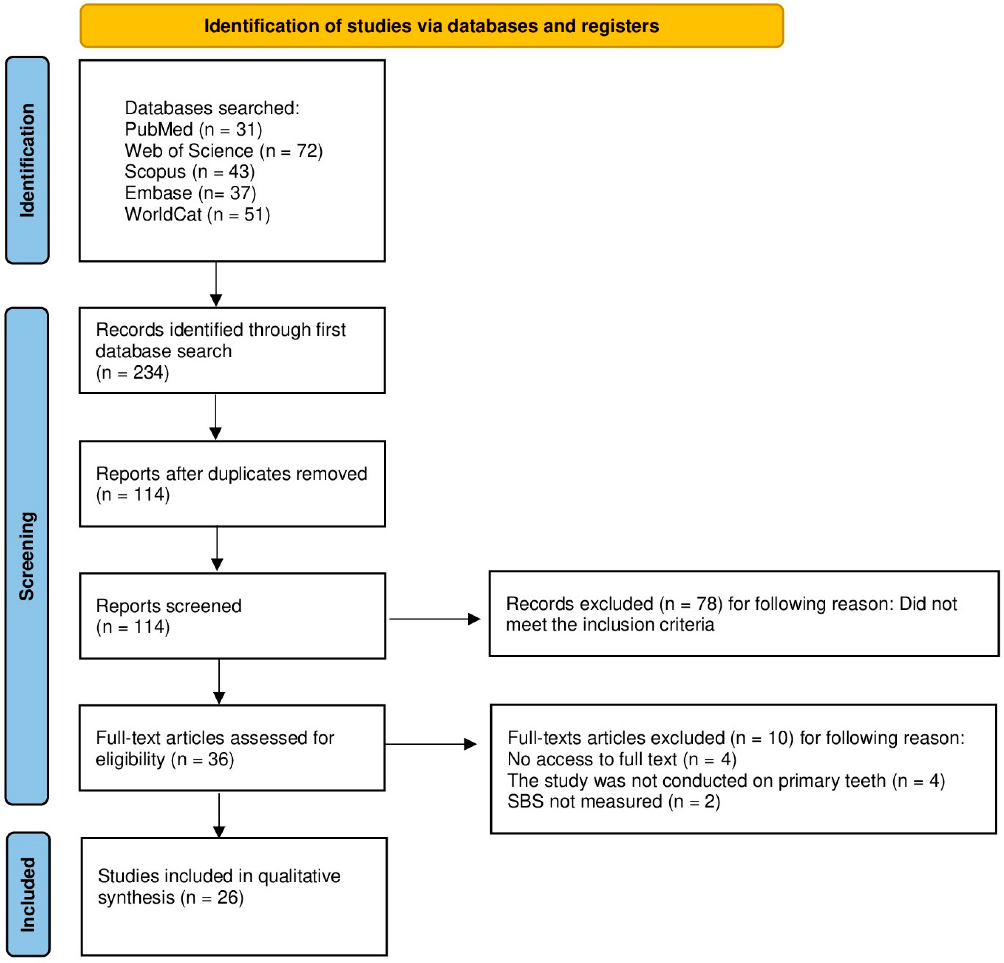 APA StyleŚwienc, W., Kiryk, J., Michalak, M., Majchrzak, Z., Laszczyńska, M., Kiryk, S., Grychowska-Gąsior, N., Nawrot-Hadzik, I., Matys, J., & Dobrzyński, M. (2025). The Effect of Laser Surface Treatment on the Bond Strength of Adhesive Materials to Primary Teeth: A Systematic Review. Materials, 18(22), 5212. https://doi.org/10.3390/ma18225212