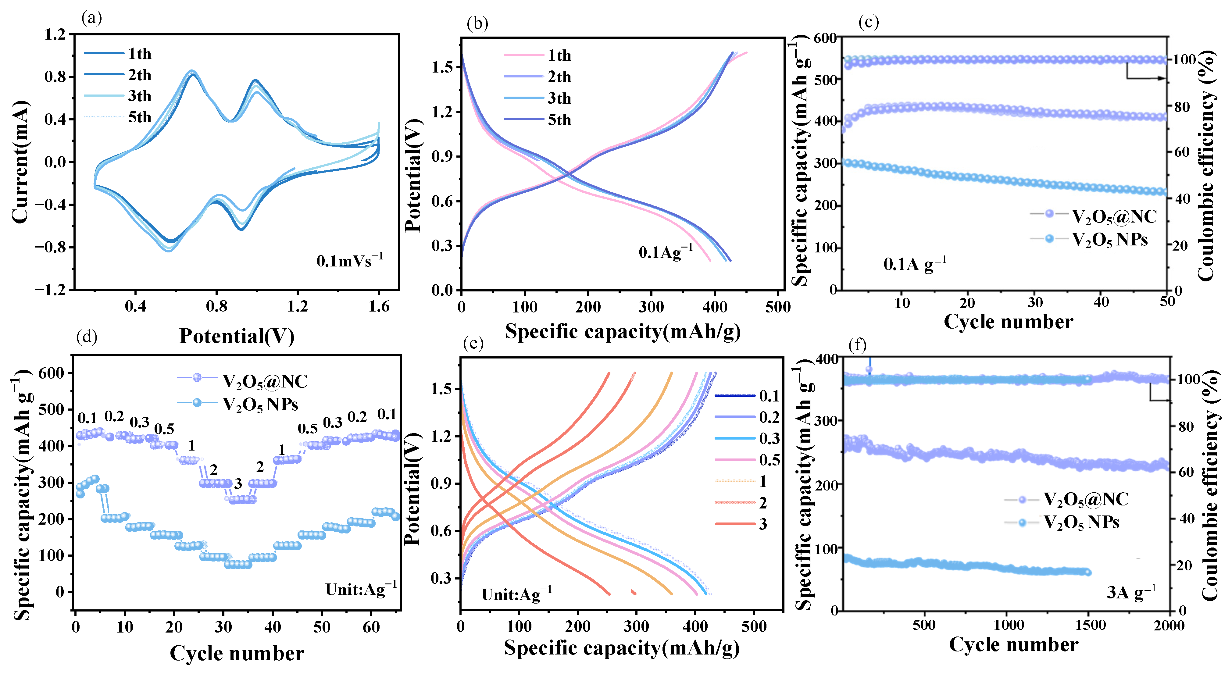 3.2. Electrochemical Performance of the V2O5@NC Electrode