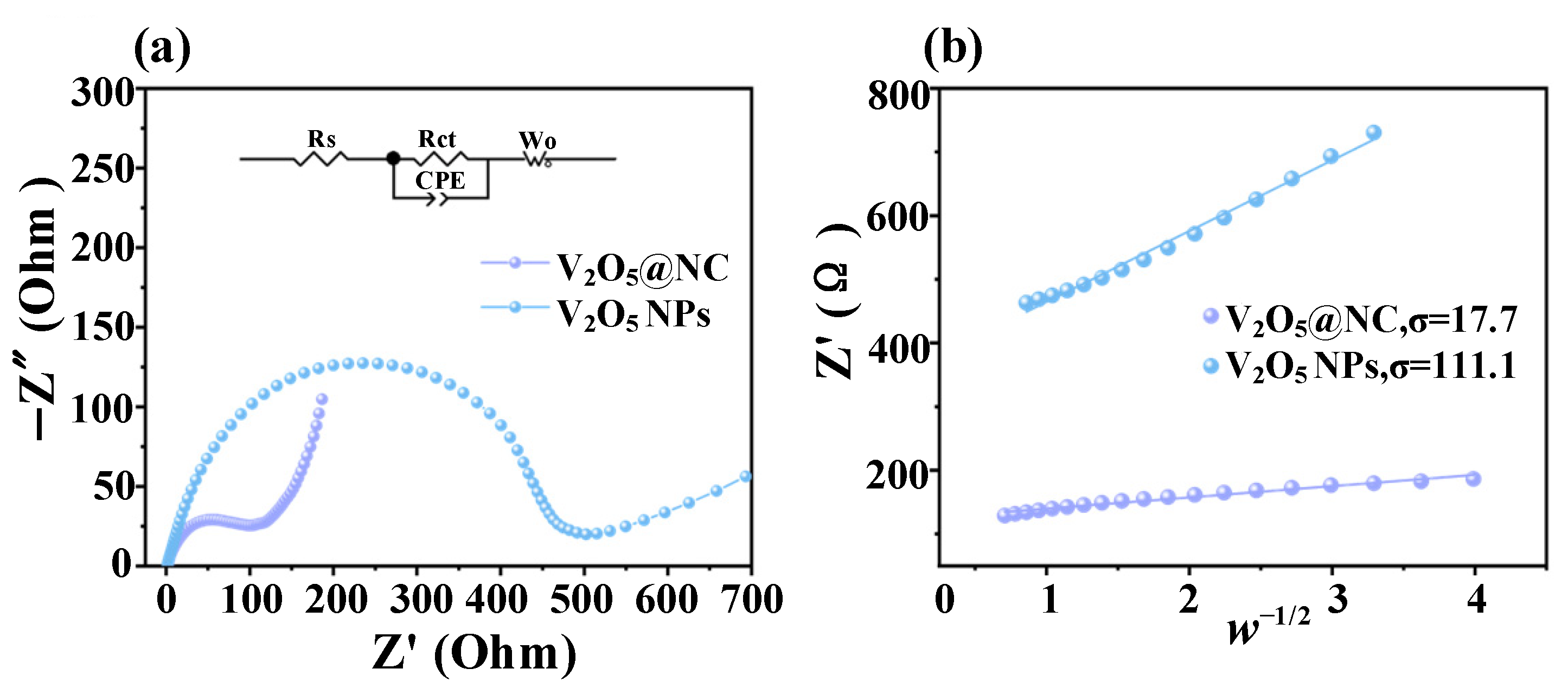 | V2O5@NC | 12.5 | 94.0 | 3.12 × 10−4 | 0.89 | 98.5 | 8.6 × 10−3 | 0.71 |
