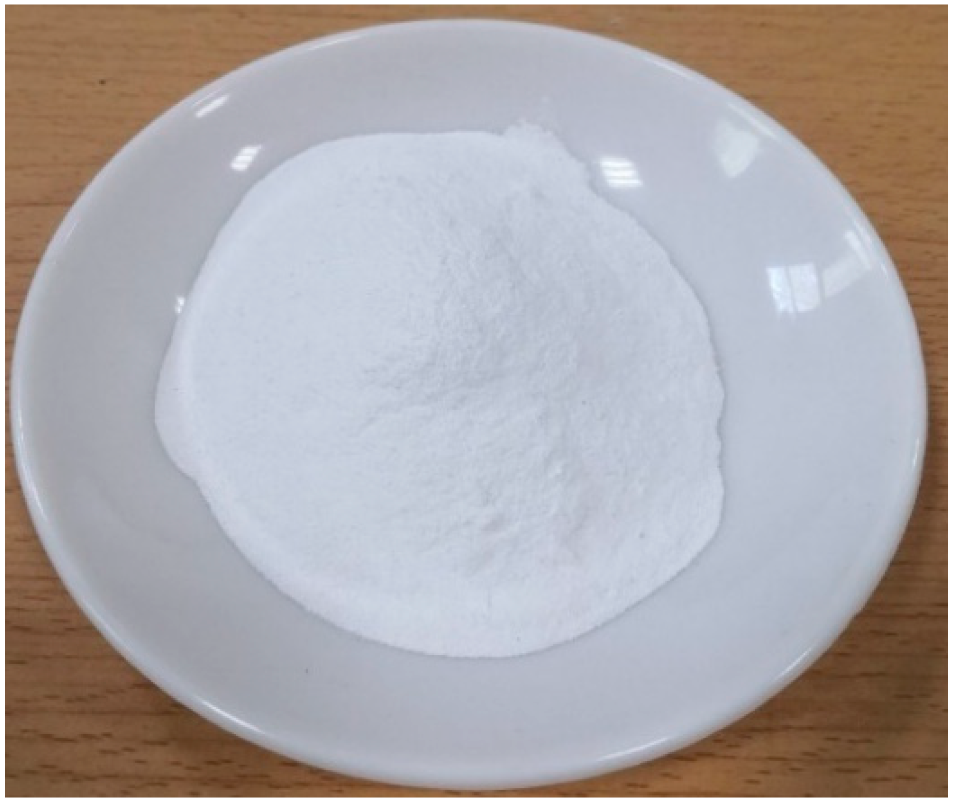 A powdered sodium methyl silicate (SMS) (as shown in Figure 2), purchased from Jinan Xingchi Chemical Co., Ltd. (Jinan, China), was used to make SMS solutions with varying concentrations. The solid content and alkali content were 98% and 29%, respectively.
