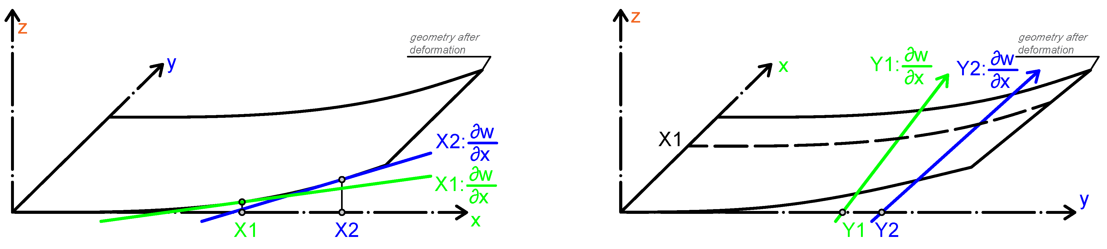 ε x = u x = u 0 x z 2 w x 2 ε y = v y = v 0 y z 2 w y 2 γ x y = u y + v x = u 0 y + v 0 x 2 z 2 w x y