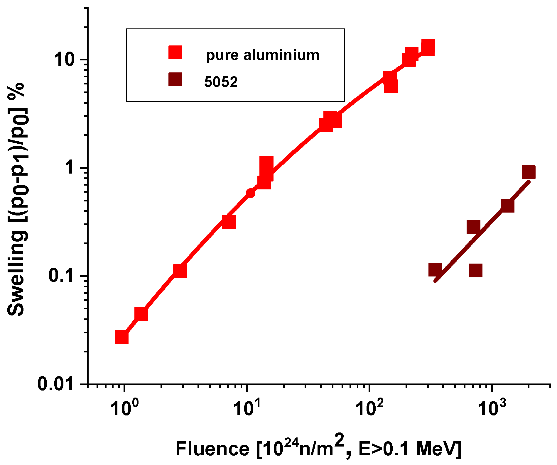 Figure 4 shows that in the case of a 5052 alloy, the swelling threshold value is around 10