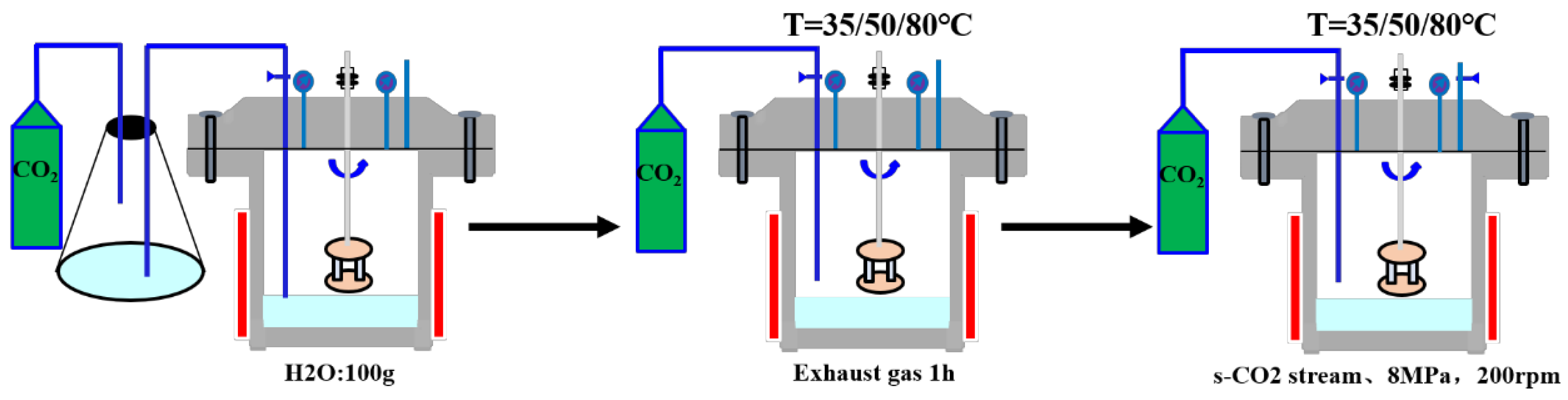 - CO2 density dependence: 1: Density decreases exponentially from 489.82 kg/m3 at 35 °C (308.15 K) to 186.31 kg/m3 at 80 °C (353.15 K) under constant pressure (8 MPa); 2: Corresponds to a 62% reduction in CO2 phase density across the tested thermal range;