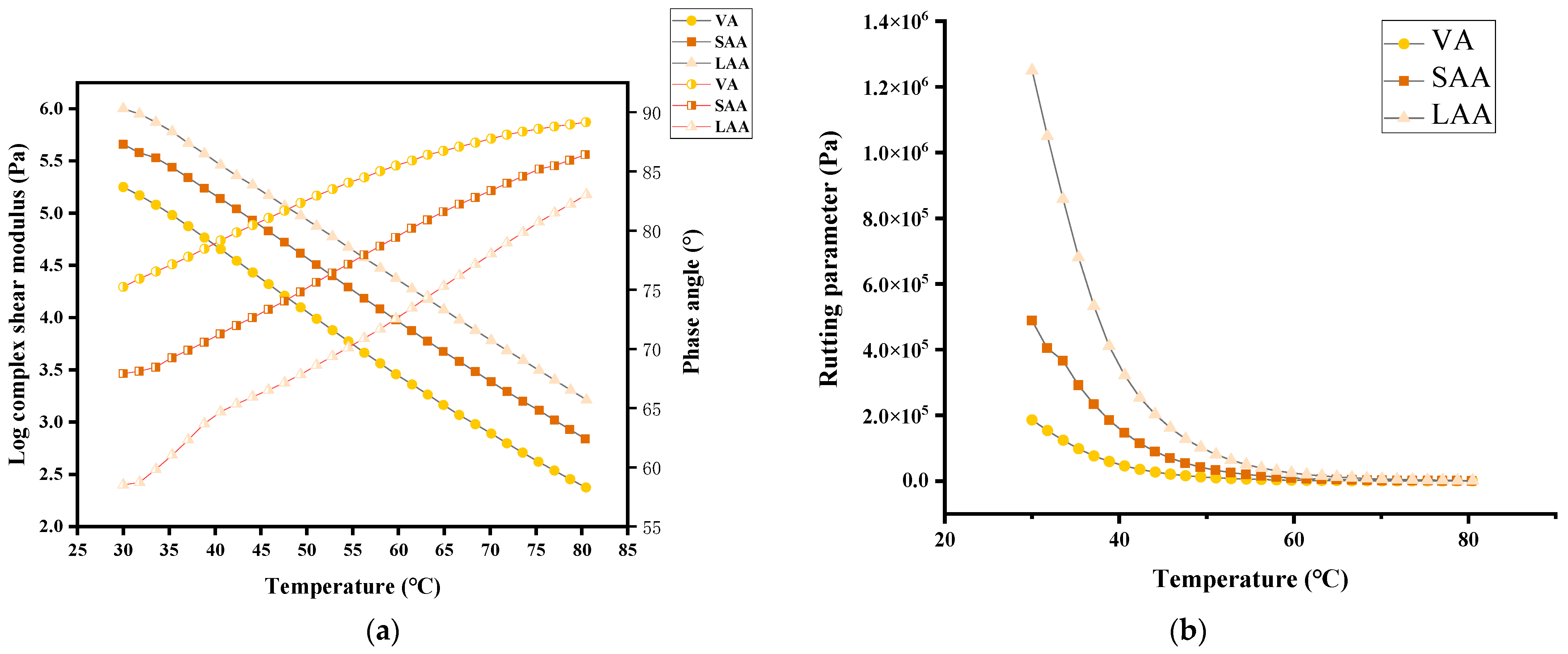 - Yang, J.; Luo, L.; Gao, J.; Xu, J.; He, C. Study on the effect of regeneration agent on the viscosity properties of aged asphalt. Materials 2022, 15, 380. [Google Scholar] [CrossRef]