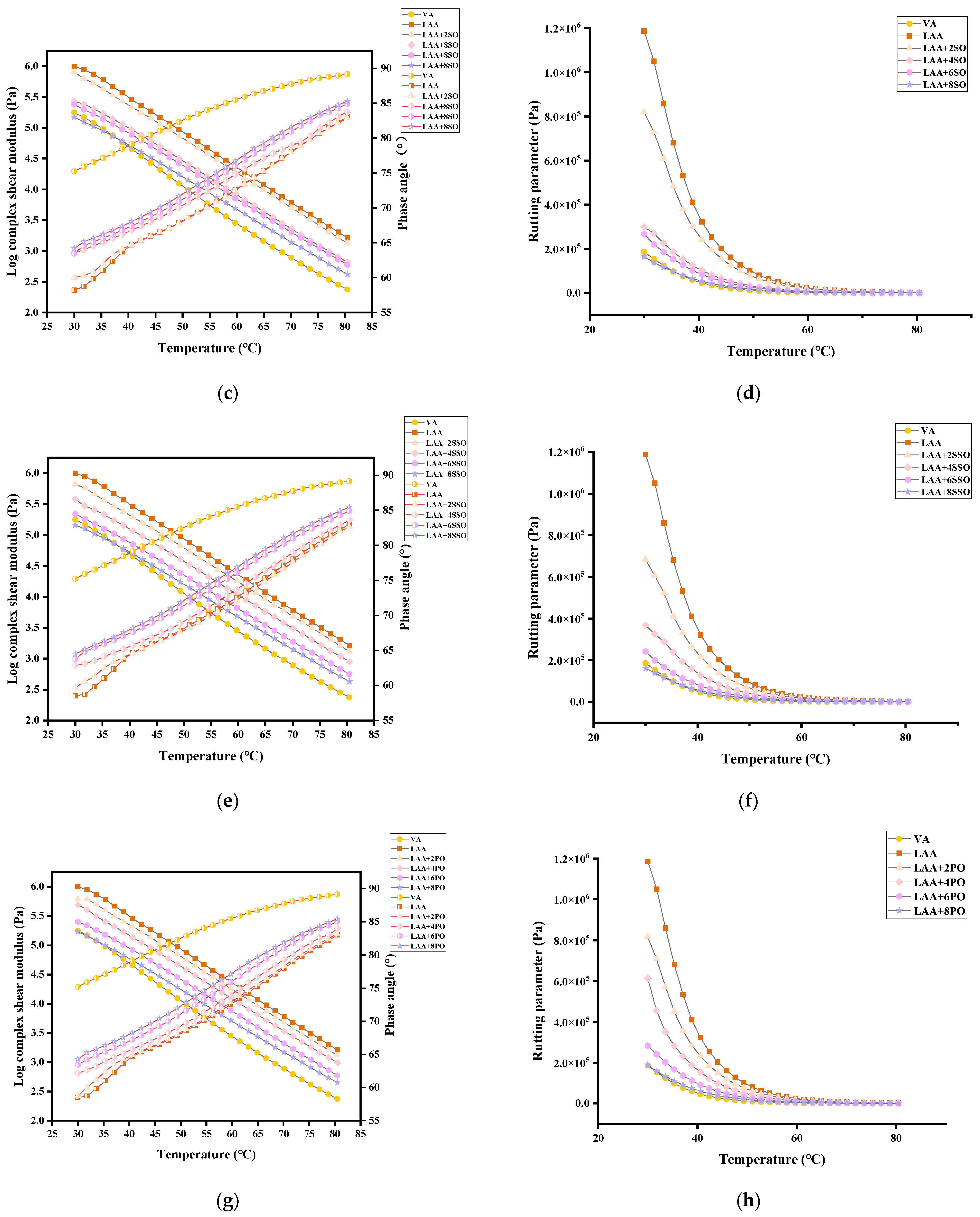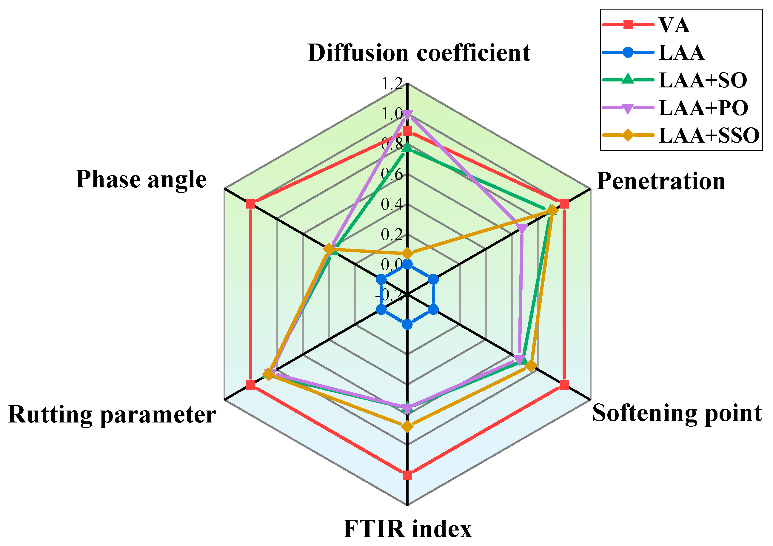- Wang, J.; Lv, S.; Liu, J.; Peng, X.; Lu, W.; Wang, Z.; Xie, N. Performance evaluation of aged asphalt rejuvenated with various bio-oils based on rheological property index. J. Clean. Prod. 2023, 385, 135593. [Google Scholar] [CrossRef]