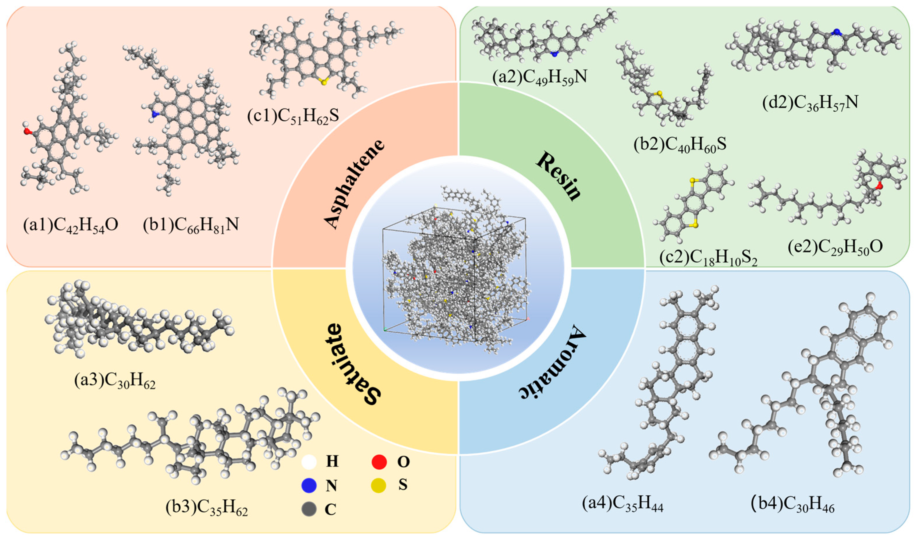 - Li, D.D.; Greenfield, M.L. Chemical compositions of improved model asphalt systems for molecular simulations. Fuel 2014, 115, 347–356. [Google Scholar] [CrossRef]