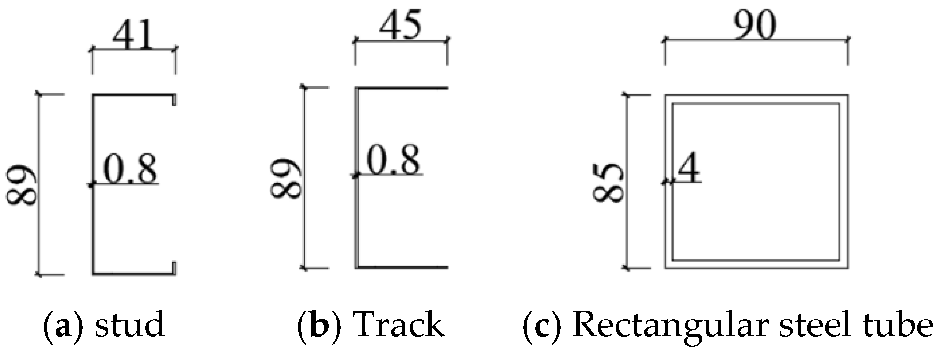 - Bao, W.; Jiang, J.; Shao, Y.S.; Liu, Y. Experimental study of the lateral performance of a steel stud wall with a semi-rigid connected frame. Eng. Struct. 2019, 183, 677–689. [Google Scholar] [CrossRef]