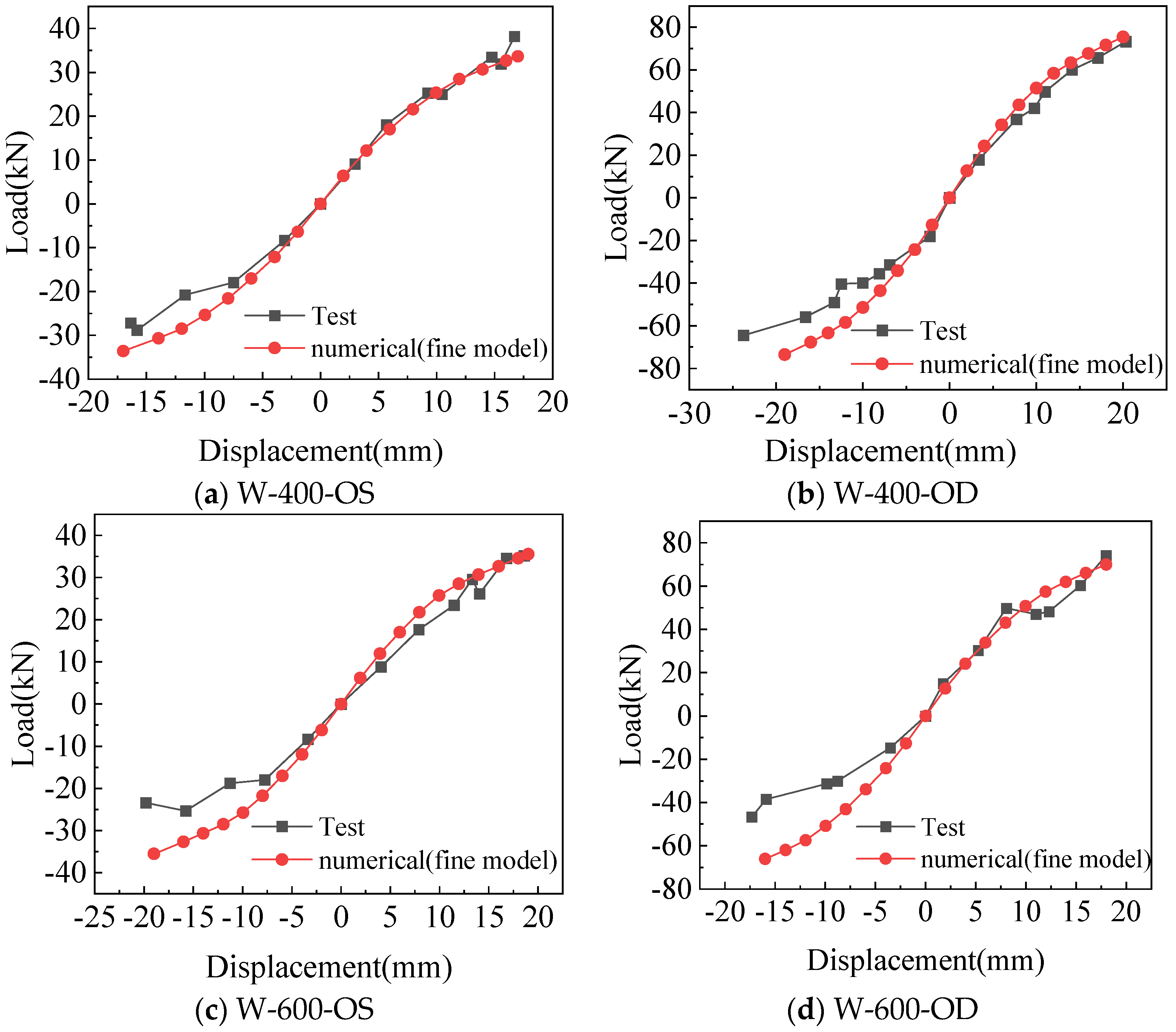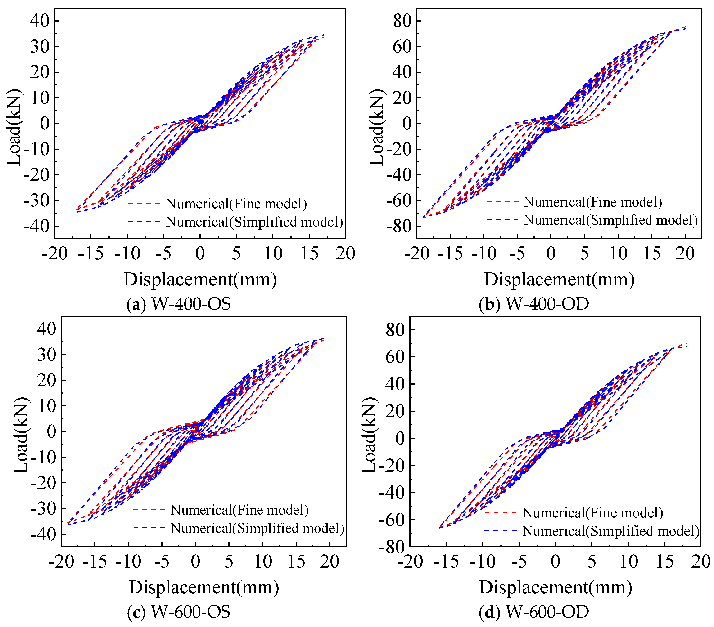 2.4.2. Comparison of Hysteretic Curve and Skeleton Curve from the Fine Model Analysis