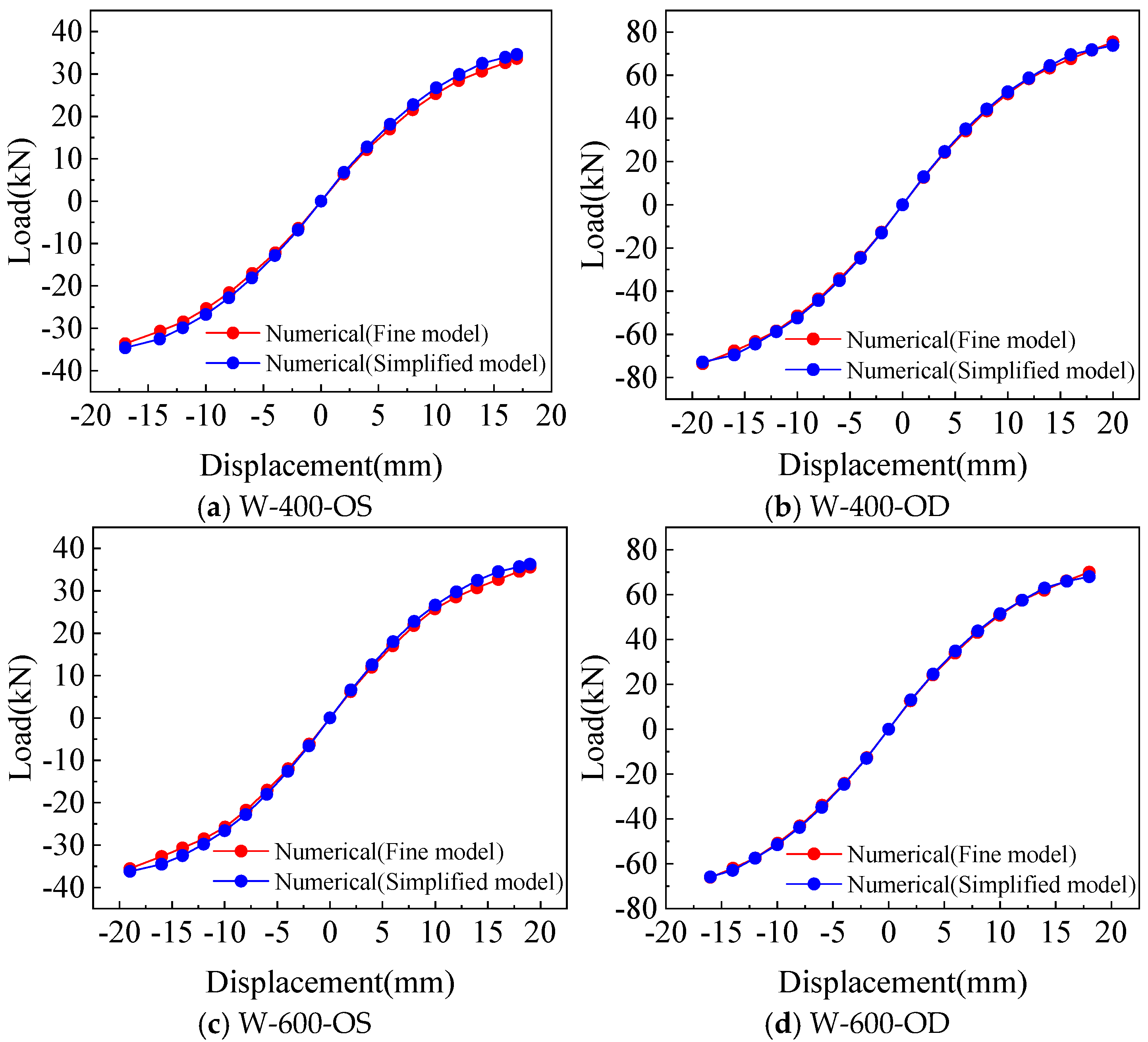 3.3. Comparison of the Results Between the Fine Model and the Simplified Model Analysis