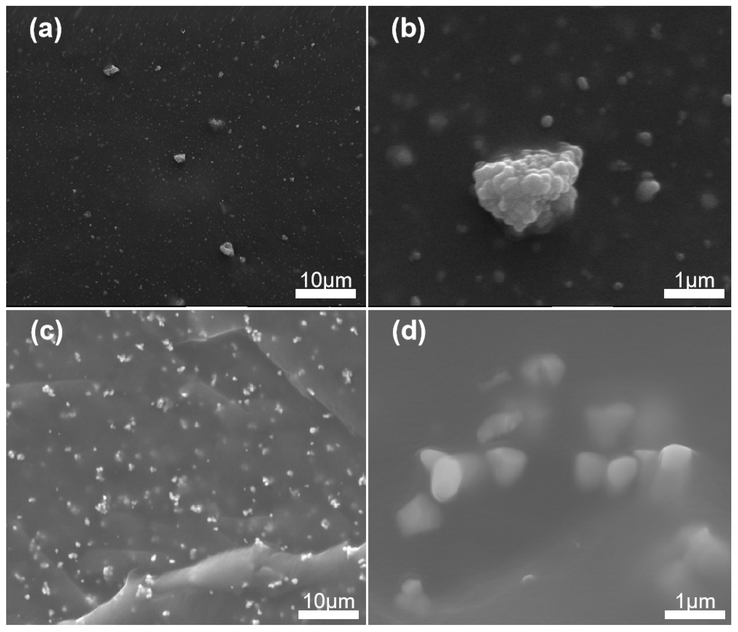 - Li, C.; Hu, J.; Lin, C.; Zhang, B.; Zhang, G.; He, J. Fluorine gas treatment improves surface degradation inhibiting property of alumina-filled epoxy composite. AIP Adv. 2016, 6, 025017. [Google Scholar] [CrossRef]