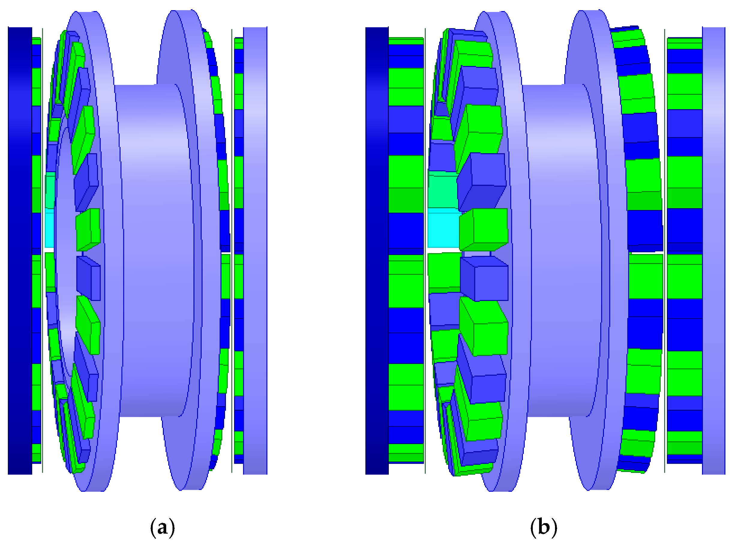 - Frank, N.W.; Pakdelian, S.; Toliyat, H.A. A Magnetic Gear with Passive Transient Suppression Capability. In Proceedings of the IEEE Electric Ship Technologies Symposium, Alexandria, VA, USA, 10–13 April 2011; ESTS: Exeter, UK, 2011; pp. 326–329. [Google Scholar]
