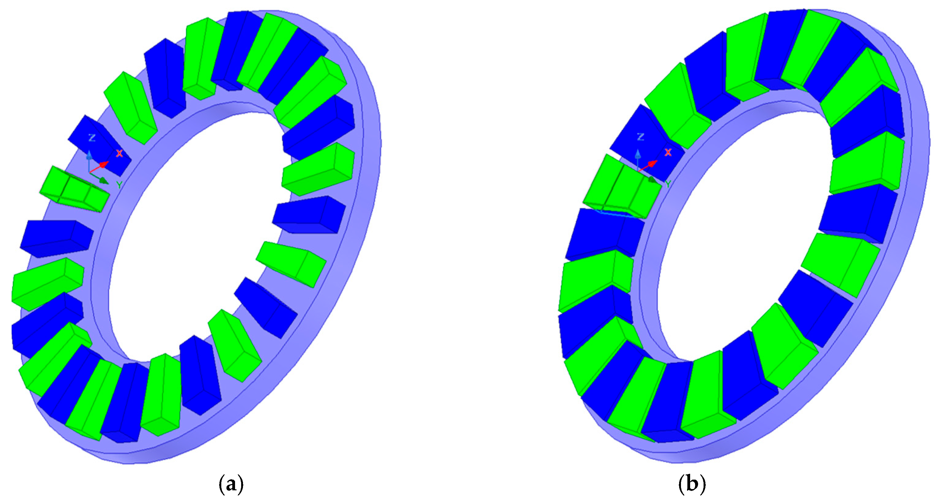 - Huang, W.; Bettayeb, A.; Kaczmarek, R.; Vannier, J. Optimization of Magnet Segmentation for Reduction of Eddy-Current Losses in Permanent Magnet Synchronous Machine. IEEE Trans. Energy Convers. 2010, 25, 381–387. [Google Scholar] [CrossRef]