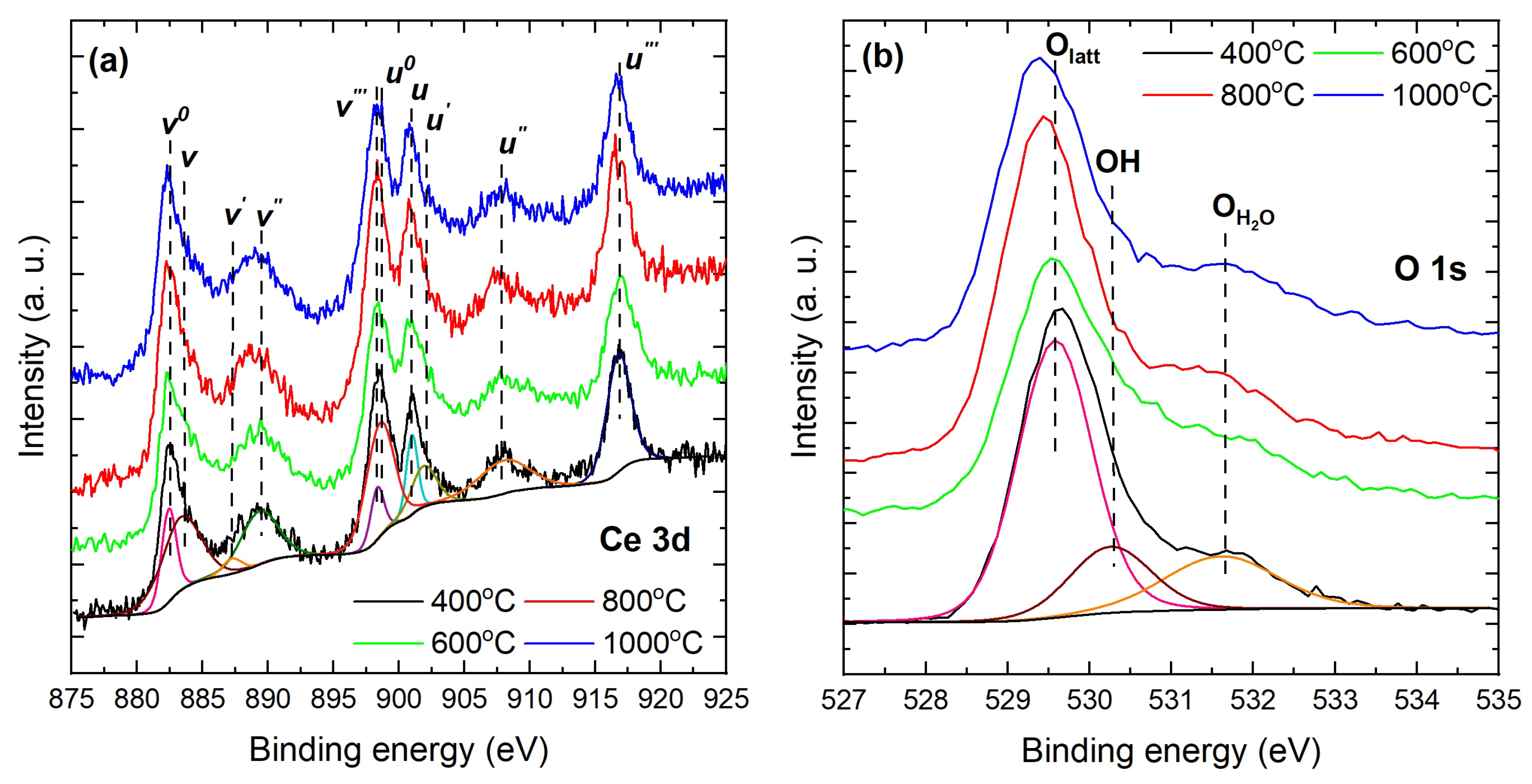 - Morgan, D.J. Photoelectron spectroscopy of ceria: Reduction, quantification, and the myth of the vacancy peak in XPS analysis. Surf. Interface Anal. 2023, 55, e7254. [Google Scholar] [CrossRef]