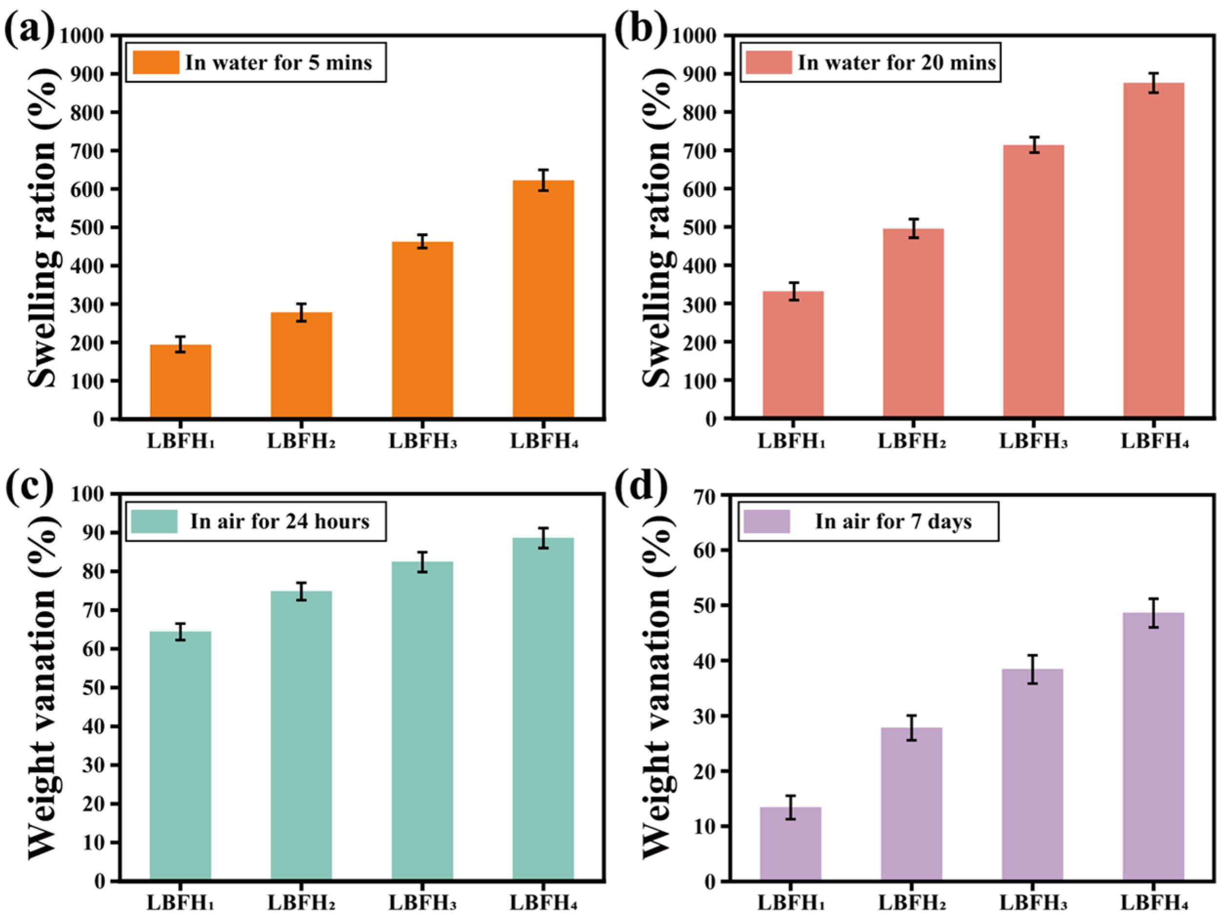 2.6. Water Absorption Swelling and Anti-Dehydratioan Performance