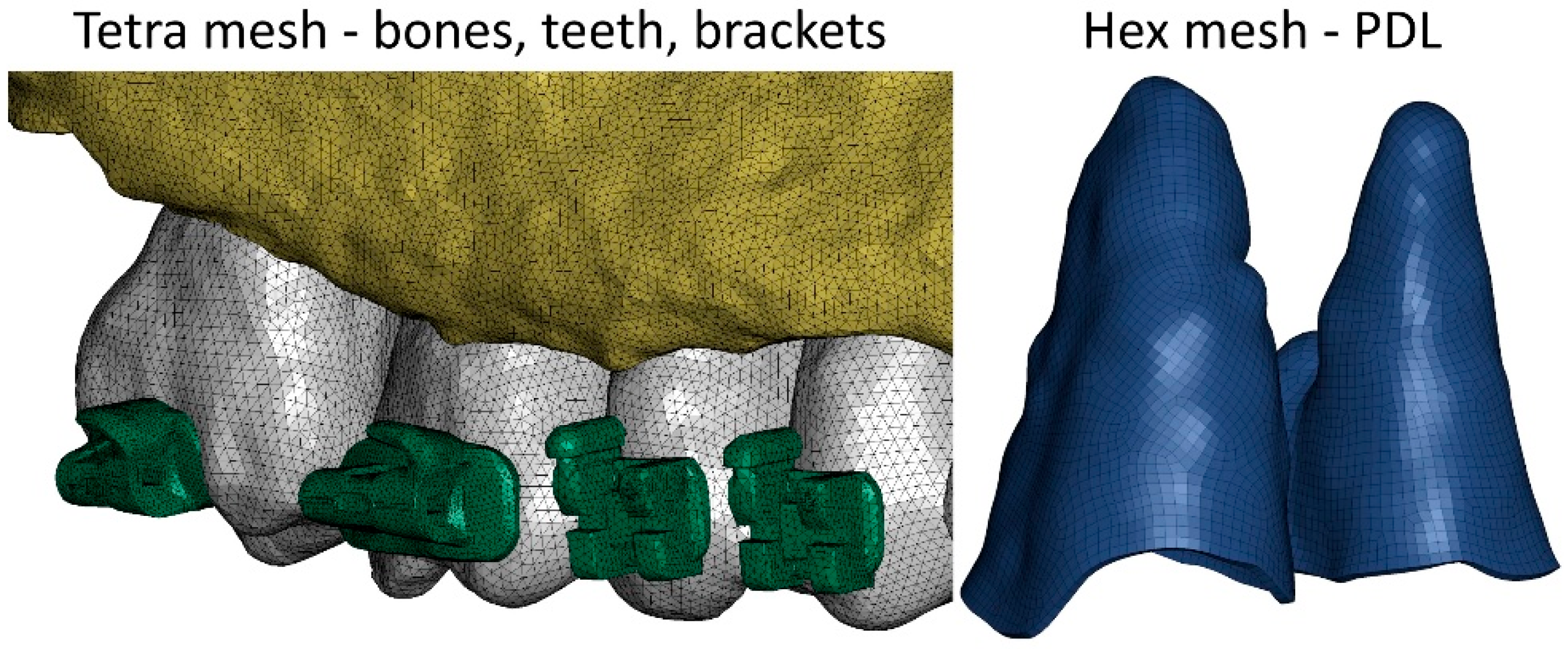 - Rajgopal, N. Finite Element Analysis in Orthodontics, Dentistry. In Current Trends in Orthodontics; IntechOpen: Rijeka, Croatia, 2022. [Google Scholar] [CrossRef]