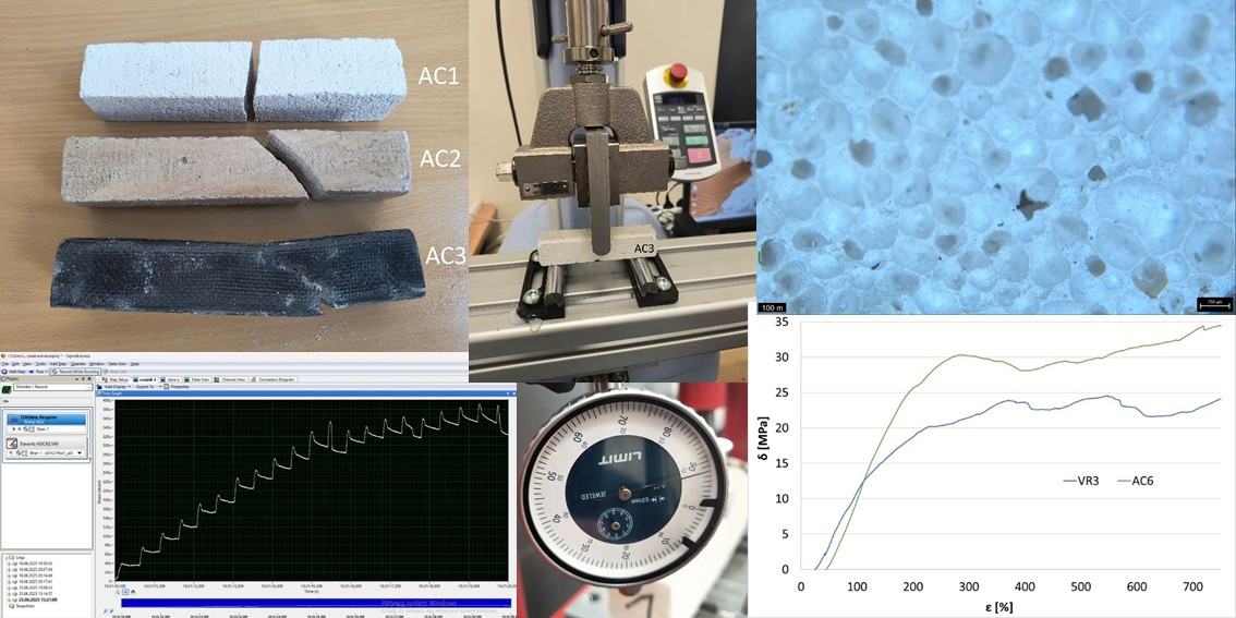 | AC3 | aerated concrete, sample additionally reinforced with carbon fabric | 40 × 40 × 200 | 190 |