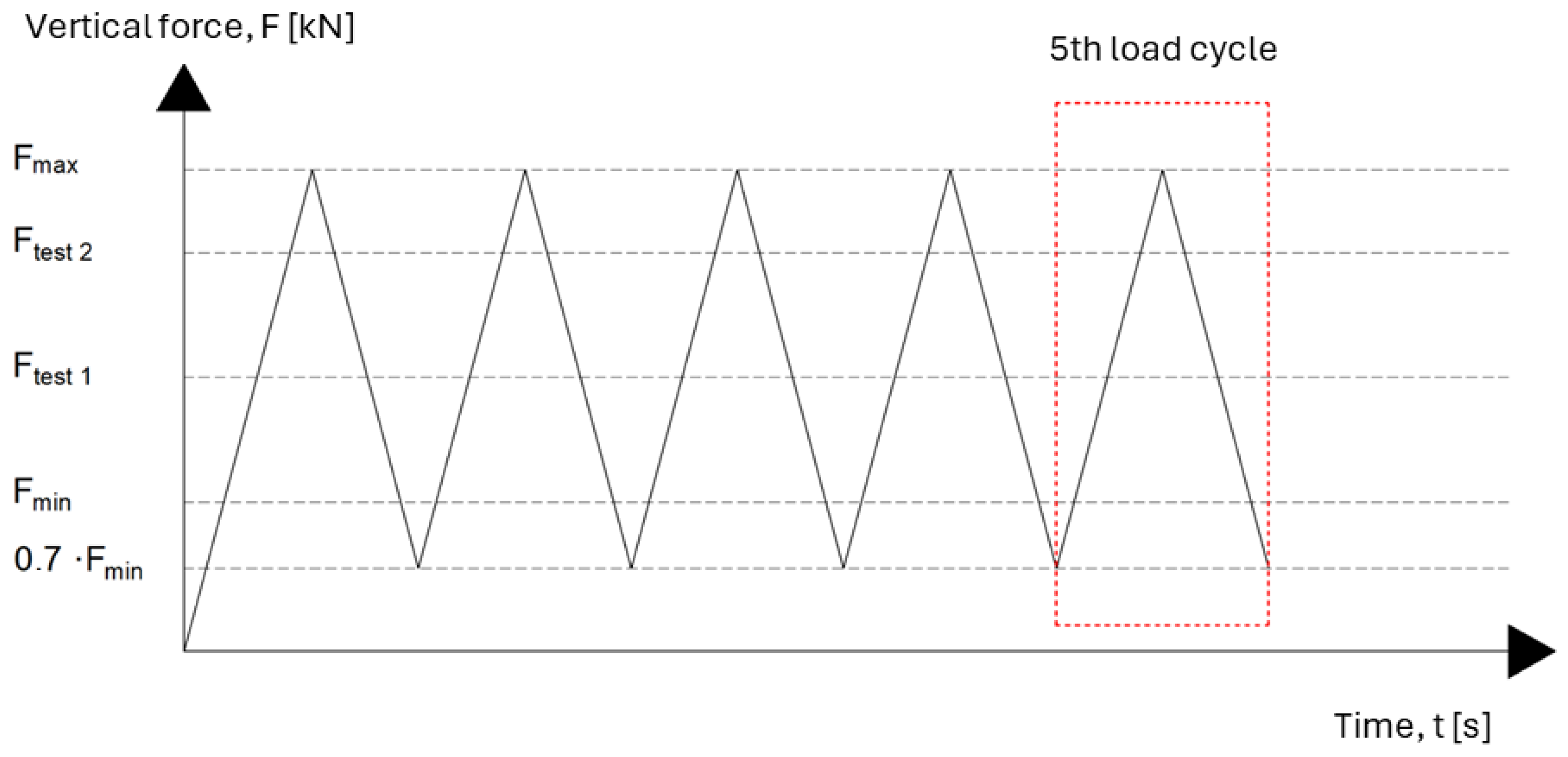 Subsequent to the full assembly of the test setup and the calibration of all measurement systems, the loading procedure can be initiated. The test initiates with the application of a vertical compressive force,