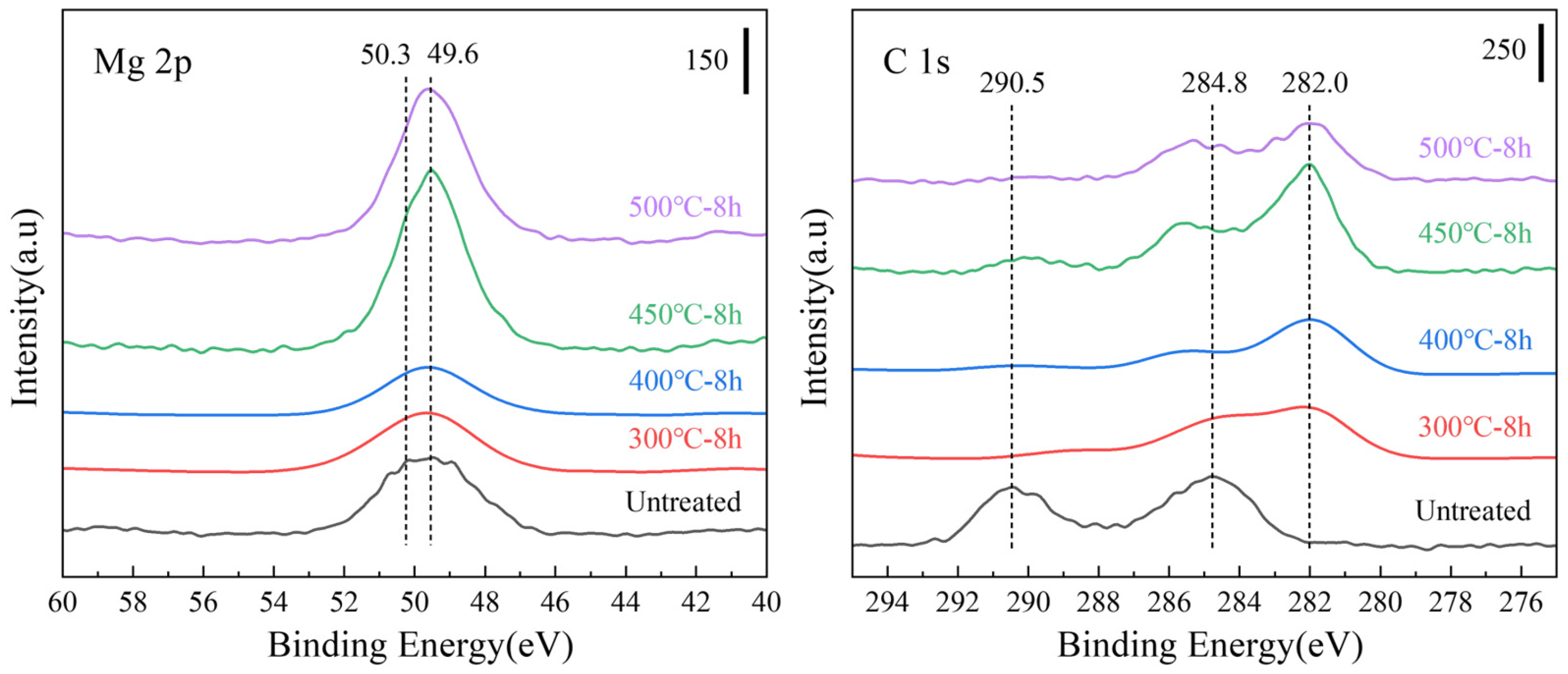 3.3. Effects of Surface Fluorination on the Oxidation Resistance of Magnesium