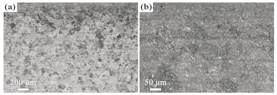 OM micrographs of the T650-USSR sample: (a) Low- and (b) high-magnification images.