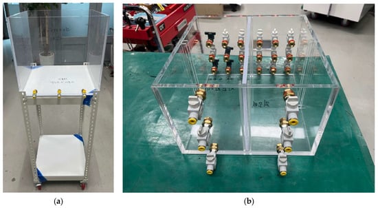 The experimental schematic and process are as shown in Figure 2 and Figure 3. Where although the acrylic divider shown in Figure 1 was included during the fabrication of the soil box to enable dual-chamber configurations, it was removed before conducting the experiments. Removing the divider ensured a single and uniform hydraulic gradient and reduced possible flow disturbances around the liner. Figure 3 illustrates the actual configuration employed in this study. The experimental method is as follows: