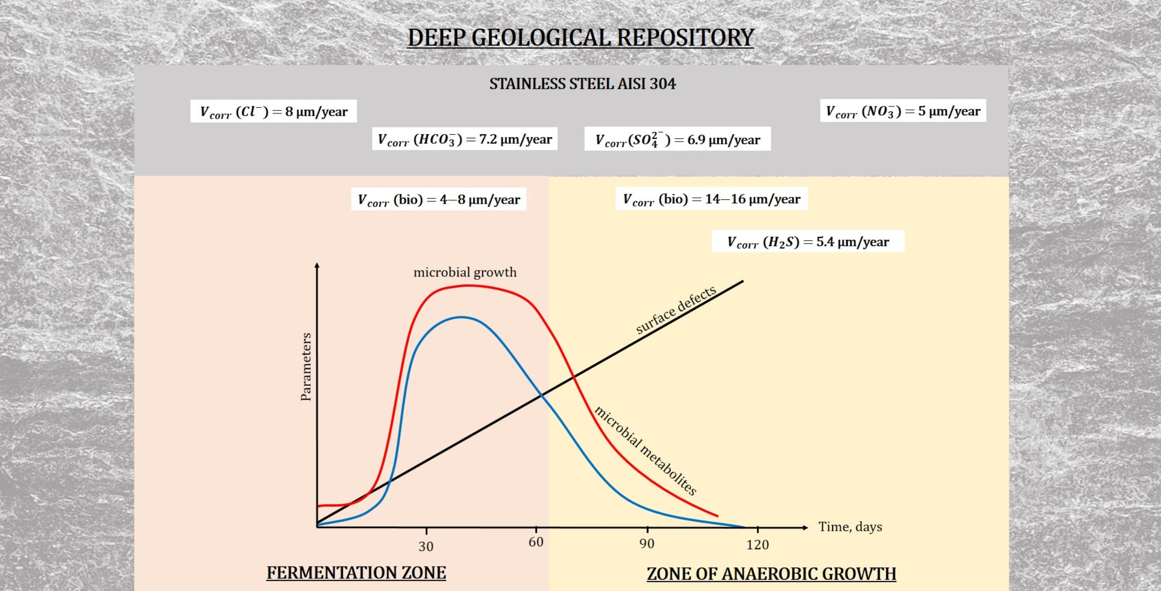 Thus, the results of the research demonstrate the complex nature of corrosion processes in the conditions of modeling the geological burial of radioactive waste, where biological and abiotic factors interact, creating a synergistic effect of corrosion.