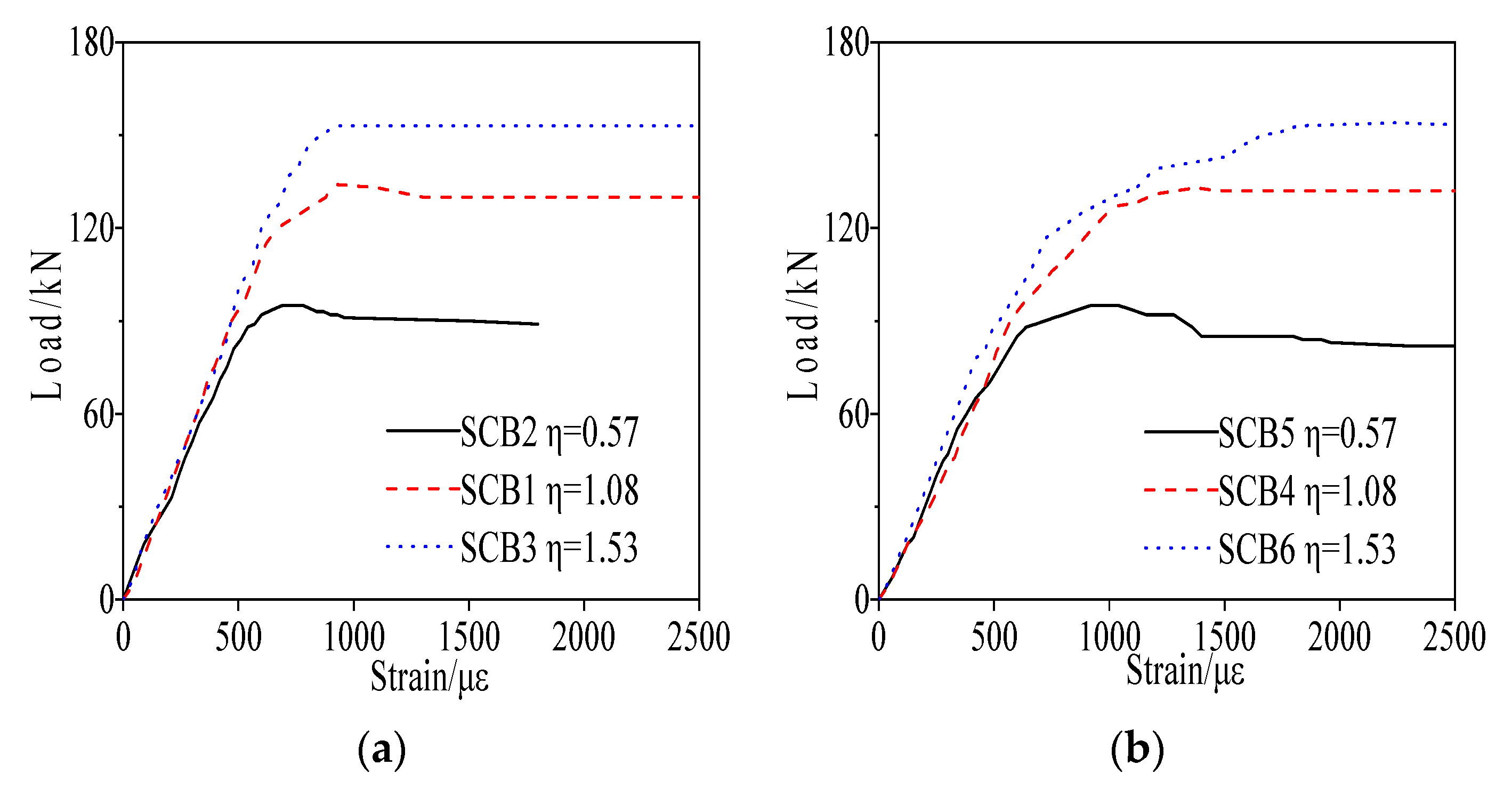- Shear Connection Degree (η): This is the most critical parameter. It directly controls the composite action between steel and concrete, playing a decisive role in the beam’s stiffness, load-bearing capacity, and interface slip behavior. The load-bearing capacity of fully shear-connected (η = 1.53) specimens was over 60% higher than that of partially connected (η = 0.57) specimens and could significantly delay the onset of interface slip.